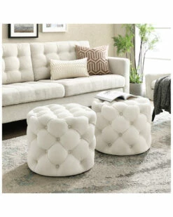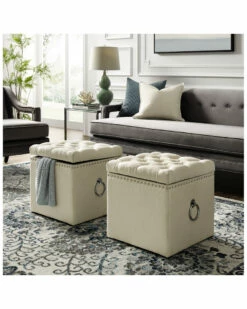 Inspired Home Cream White Linen Storage Ottoman Ottomans & Poufs
