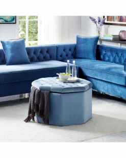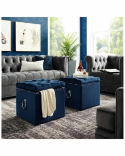 Inspired Home Navy Blue Velvet Storage Ottoman Ottomans & Poufs