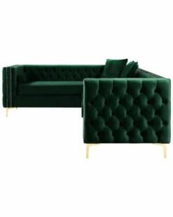 - Design details: Our velvet left facing corner sectional sofa will give your home the renaissance it deserves. Comfort and style is evident in this dynamic sofa. This sectional features rich hued button tufted velvet fabric with contrasting gold nailhead trim accenting clean square arms, high density foam padding, and sturdy Y-shaped coordinating gold metal legs. With this chaise sectional, traditional meets modern and the result is nothing short of spectacular.