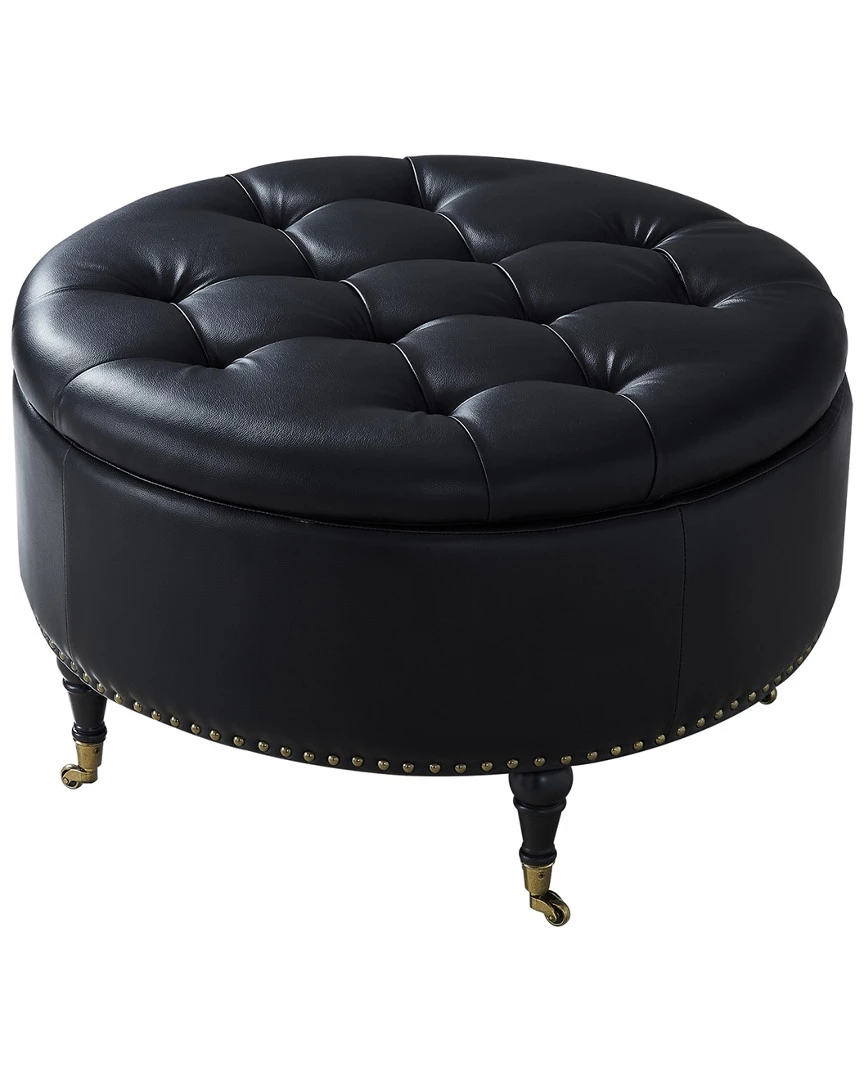 - Design details: MDF construction; PU leather; button tufting; gold tone nail head trim; high density foam cushioned seat; removable lid; hidden storage compartment; wood legs with casters; plywood frame