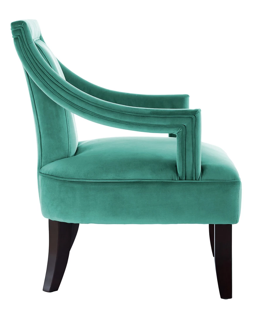 - Design details: Pine construction; open sides design; velvet upholstery; high density foam cushioned seat; saber design legs in dark espresso finish