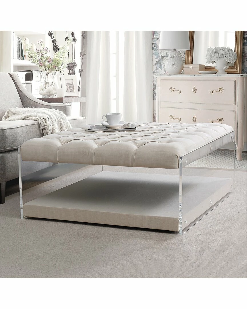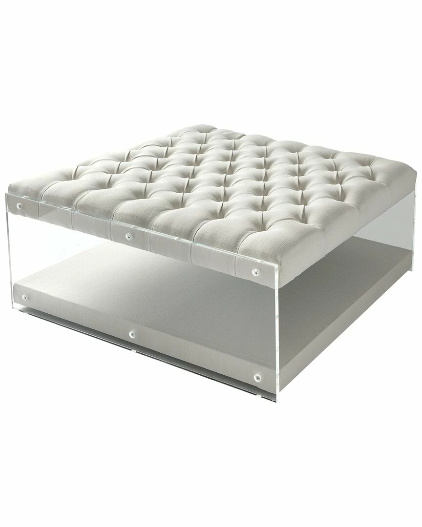 - Design details: Linen construction; button tufting, high density foam cushioned seat; solid acrylic legs