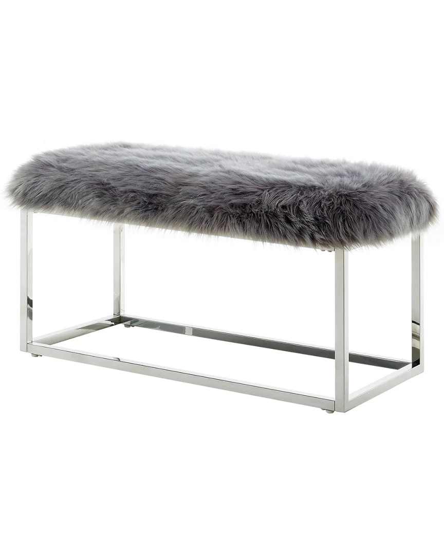 - Design details: Steel construction; faux shag fur; high density foam cushioned seat; sturdy open framework; metal frame