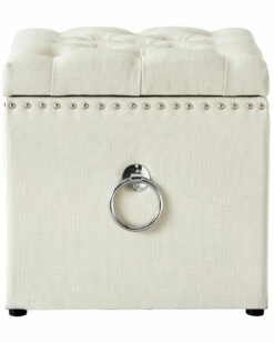 Inspired Home Cream White Linen Storage Ottoman Ottomans & Poufs