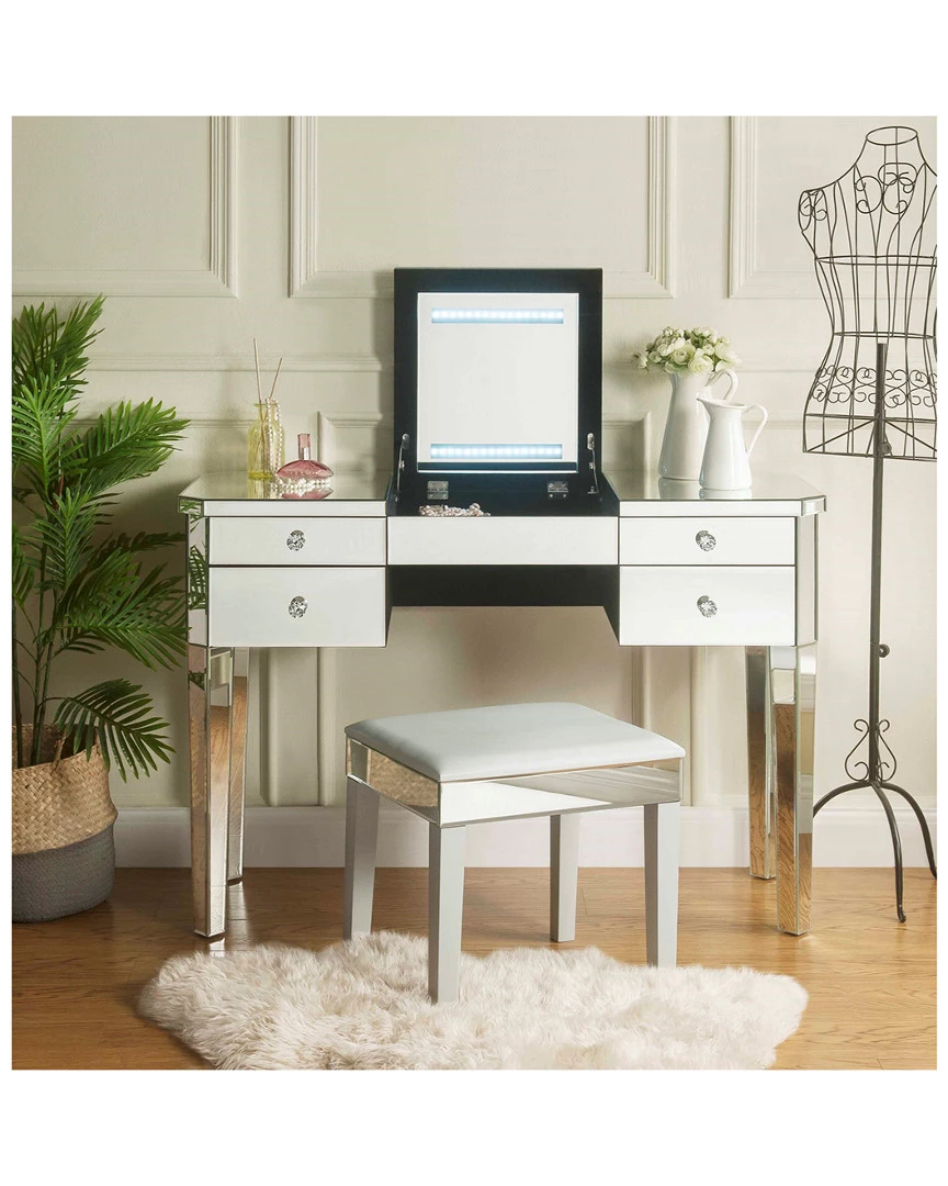 Inspired Home Demetria Mirrored Flip Top LED Vanity Table Dressers & Armoires