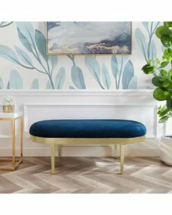 - Contemporary chic, the bench is sure to enhance any space in your home with its luxurious velvet upholstery. Add a touch of elegant glamor to any modern decor with this oval bench featuring exposed curved frame. This piece is constructed with high density foam for ultimate comfort and sleek, polished metal legs for durability. Place this bench in your living room, bedroom, or entryway to enhance the style and comfort at home.