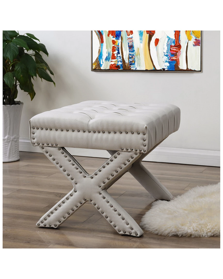 - Design details: Foam construction; linen; button tufted; high density foam cushioned seat; silver decorative nail head trim; solid birch X-legs