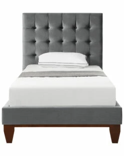 - Design details: Our velvet bed frame adds a measure of modern sophistication and elegance to your bedroom. Get the feeling of laying your head down each night in a upscale five star hotel room. This stylish bed frame features exquisite velvet, a button tufted high density foam padded headboard, and tapered solid wood legs to provide a luxurious end to your day.