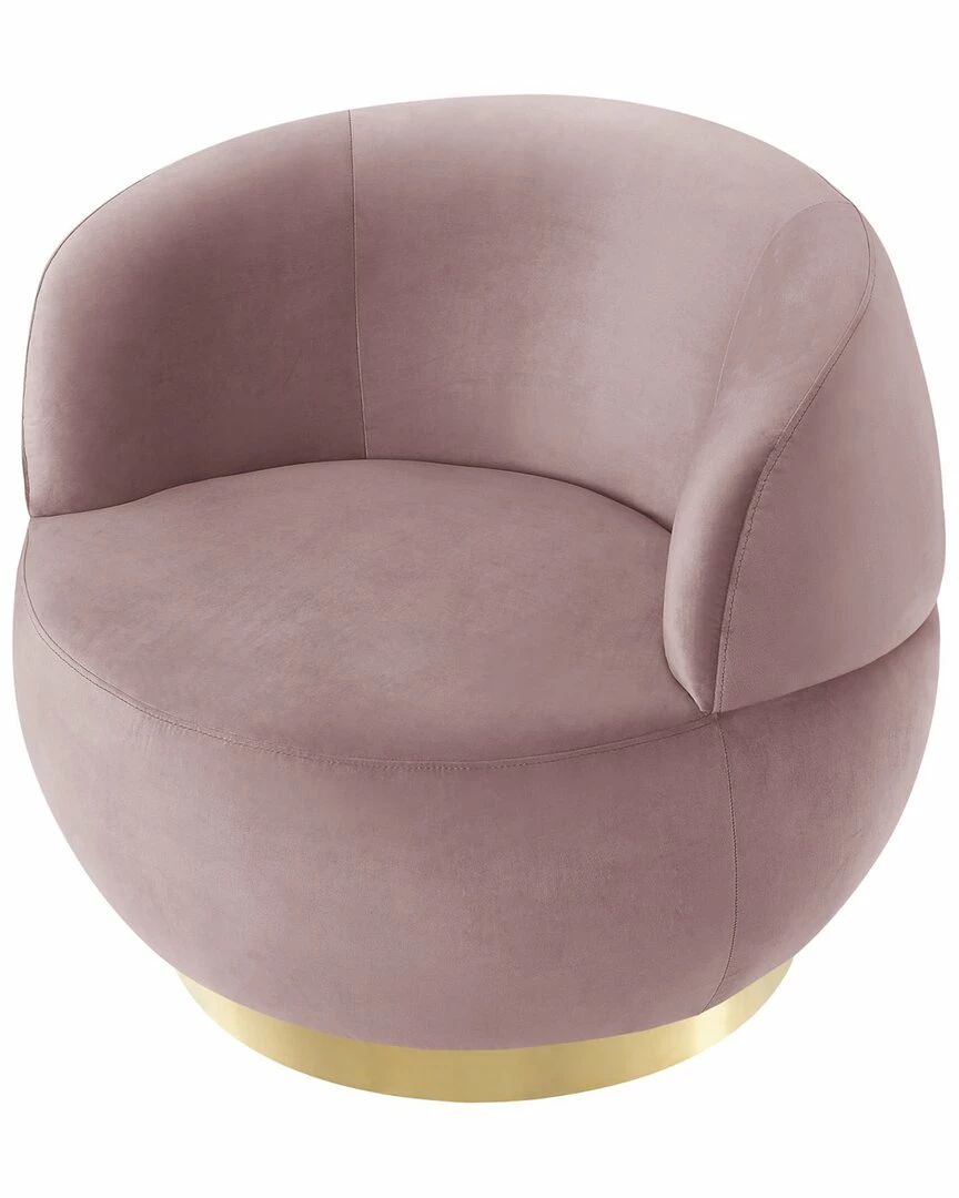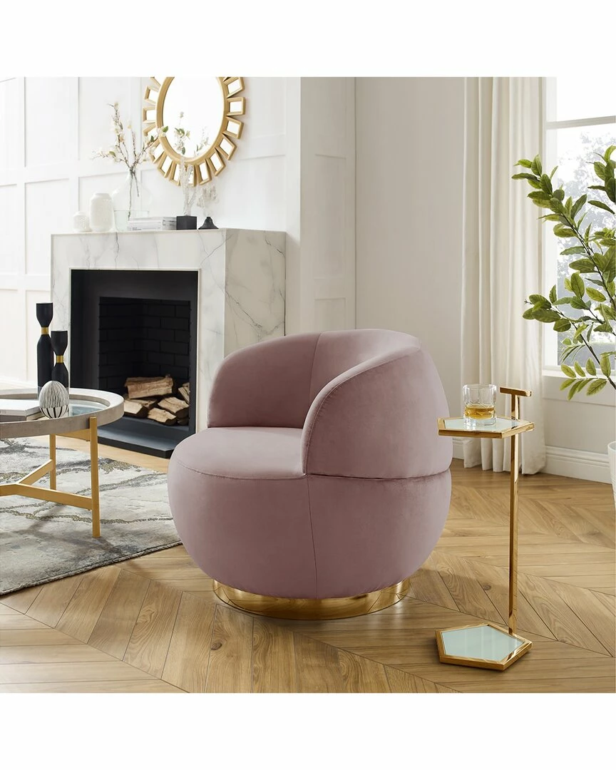 - The round swivel accent chair exudes elegance and refinement with its sleek back design. Its velvet or sherpa upholstery is luxurious to the touch and has a visual cascade of retro glitz. A rounded seat hugs the deep barrel shape for a warm and inviting appearance. The cushioned chair with rounded arms is ideal for your living room, entryway, bedroom, makeup room or lounge area, making it a perfect spot to sit back and relax.