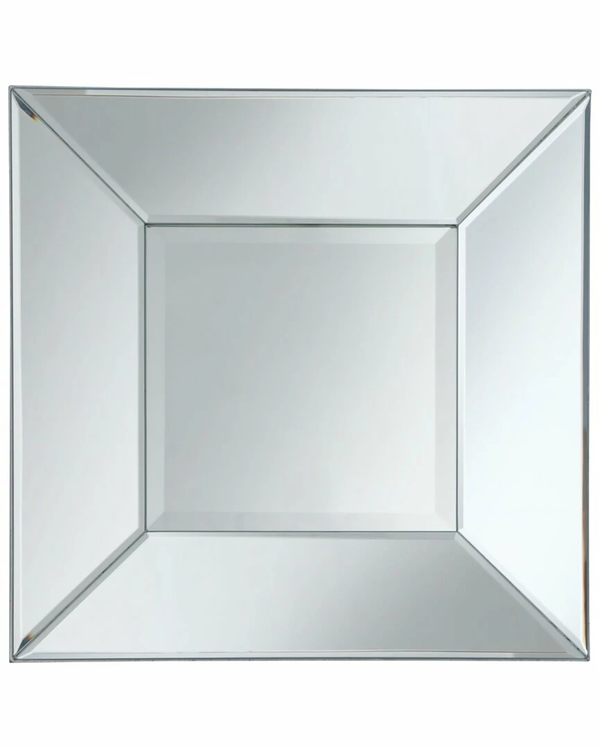 - Our square beveled wall mirror is a modern accent mirror with reflective side tiles in a beveled finish. The beveled design on the side of this accent wall mirror adds dimension and an eye-catching aspect to your walls. It also provides an easy way to reflect natural lighting throughout your space, and it pairs well with transitional and modern rooms. The mirror includes easy-hang D-rings, so you don’t have to worry about finding studs or drilling holes into your walls, making installation quick and hassle-free.