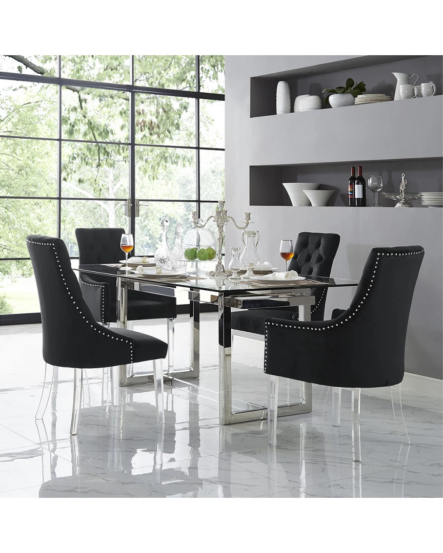 - Design details: Plywood construction; set of 2 dining chairs; upholstered; button tufted; Lucite acrylic legs; handmade nail head trim; plywood frame