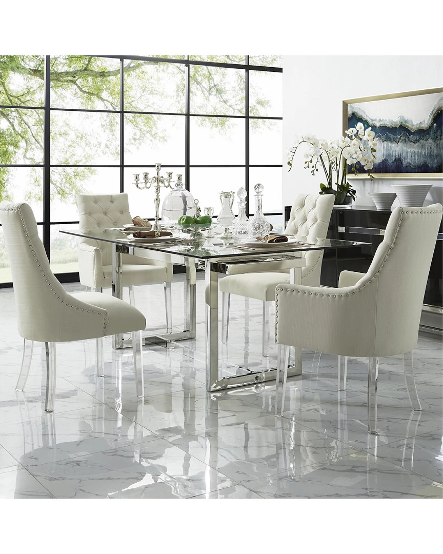 - Design details: Plywood construction; set of 2 dining chairs; upholstered; button tufted; Lucite acrylic legs; handmade nail head trim; plywood frame