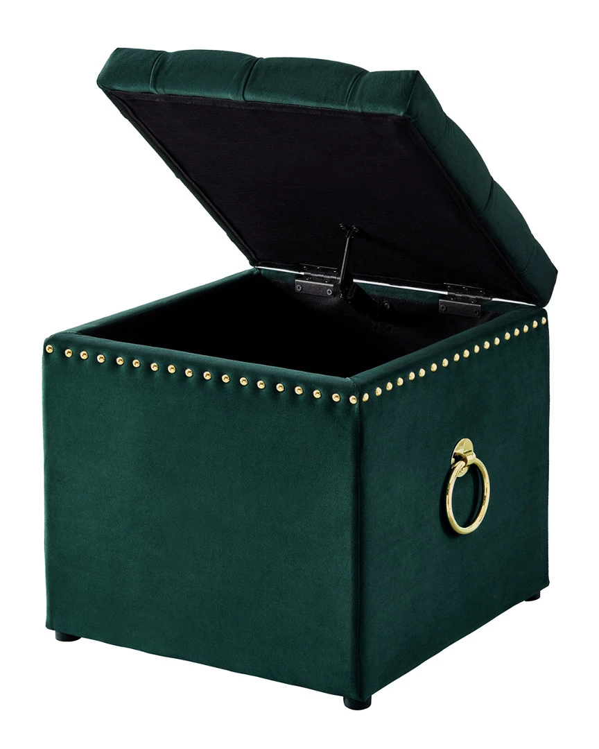 Inspired Home Hunter Green Velvet Storage Ottoman Ottomans & Poufs