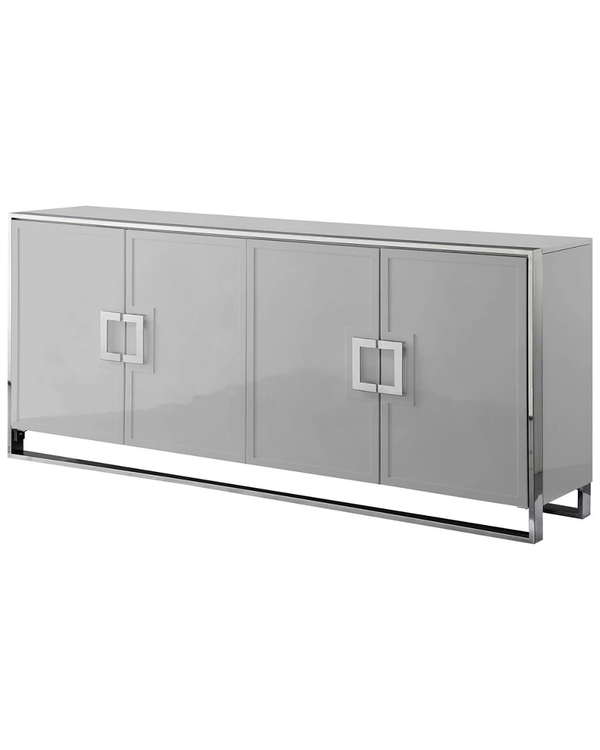 - When it comes to rounding out your dining ensemble, nothing is quite as versatile as a sideboard or buffet. This clean-lined sideboard with 4 doors brings both function and modern inspiration to any arrangement in your home. An elegant piece with stainless steel handles and frame has 2 adjustable shelves to tuck away all your items. The storage piece pairs function with fashion, tying your ensemble all together while offering room to stage and stow entertaining essentials for festive family feasts and upscale dinner parties alike.