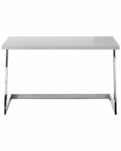 - This writing desk is a beautiful addition to the modern household. Ideal for the home or office. This practical yet sophisticated look allows it to function well in just about any room of the house. Crafted form stainless steel, the base features geometric design that works well in any contemporary settings. Our writing desk with a high gloss finish and shiny stainless steel legs brings a touch of modern to your home or office. Its compact design is ideal for small homes. This glamorous style classic desk w/ modern appeal really makes a statement and brings luxurious and sophisticated look, creating shimmering and lustrous appeal.