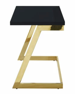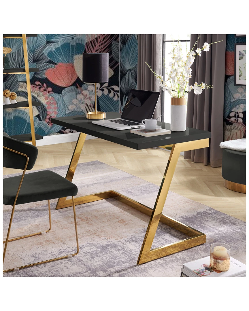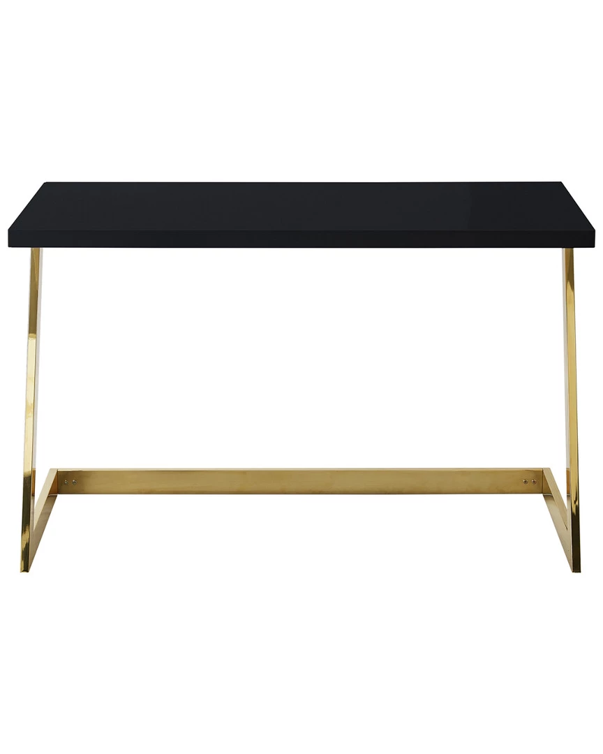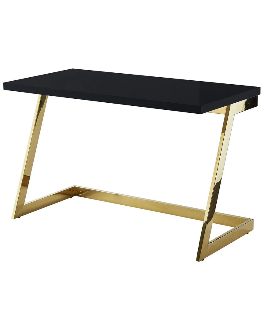 - This writing desk is a beautiful addition to the modern household. Ideal for the home or office. This practical yet sophisticated look allows it to function well in just about any room of the house. Crafted form stainless steel, the base features geometric design that works well in any contemporary settings. Our writing desk with a high gloss finish and shiny stainless steel legs brings a touch of modern to your home or office. Its compact design is ideal for small homes. This glamorous style classic desk w/ modern appeal really makes a statement and brings luxurious and sophisticated look, creating shimmering and lustrous appeal.