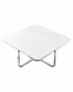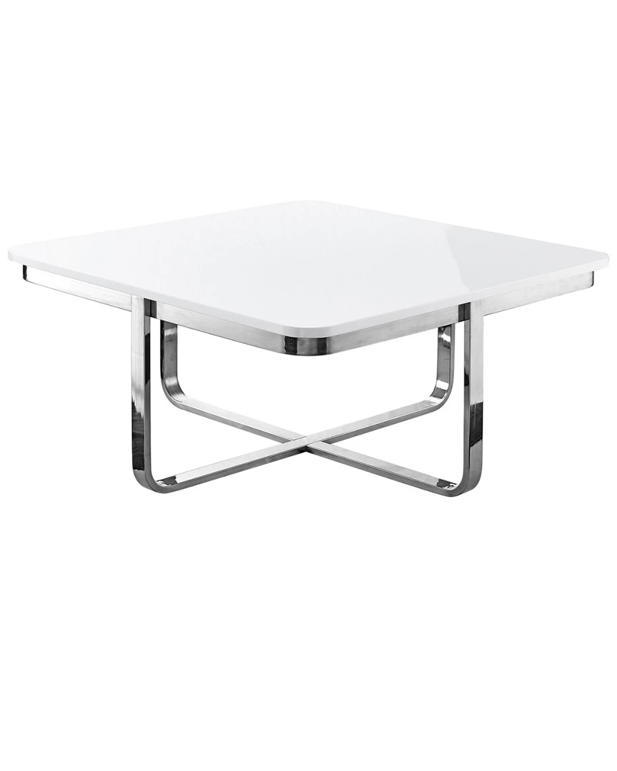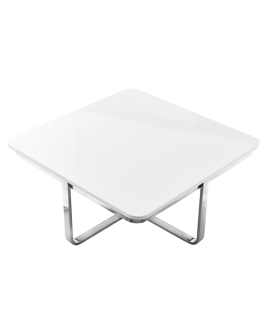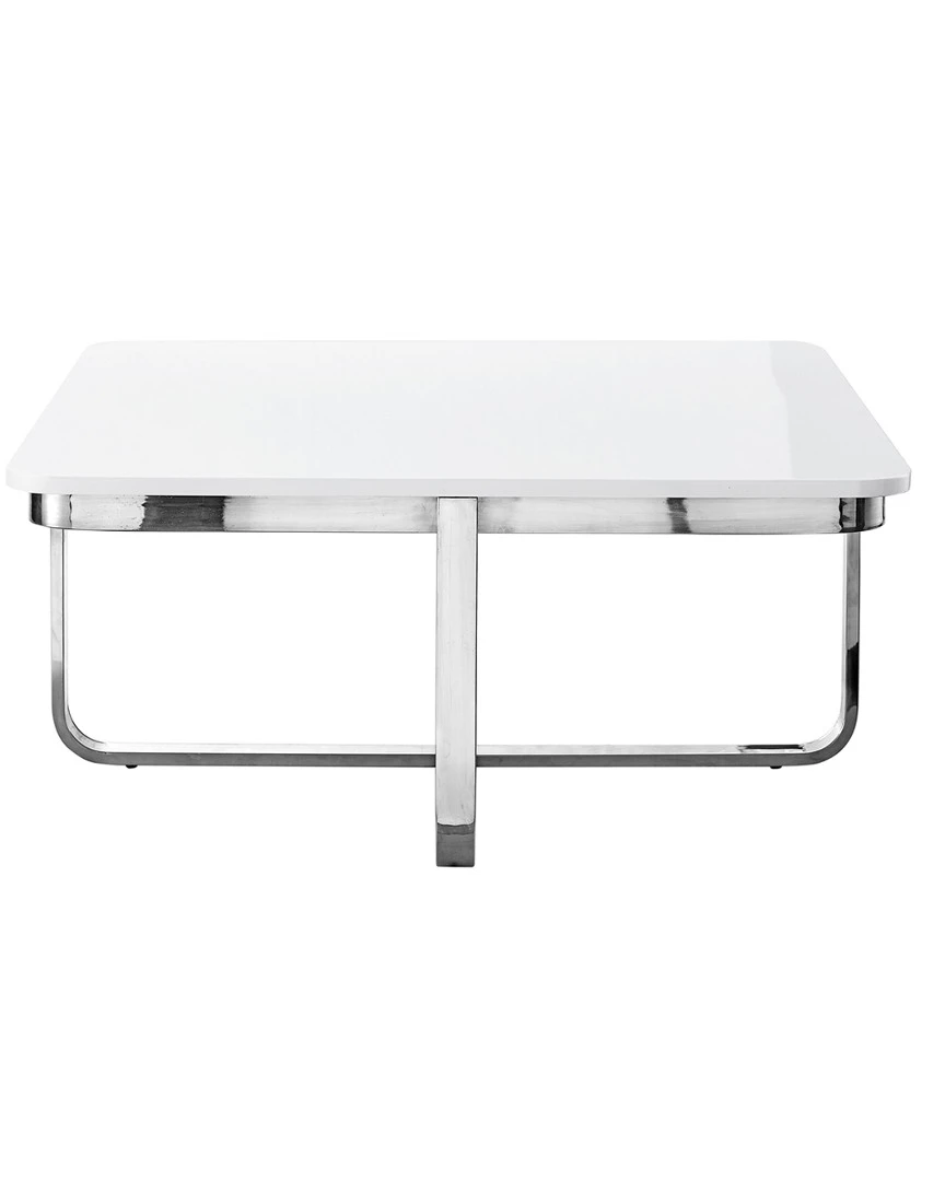 - Bring contemporary modern style into your home. This coffee table is a perfect complement to a variety of interior decor. It is constructed of MDF top with a high gloss lacquer finish and stainless steel shiny clean-lined base. Show off favorite decorative items, let it hold a warm cup of coffee while reading or let it anchor stacks of magazines next to your lovely sofa. This modern coffee table will be a favorite piece for years to come.