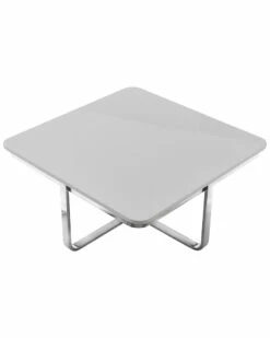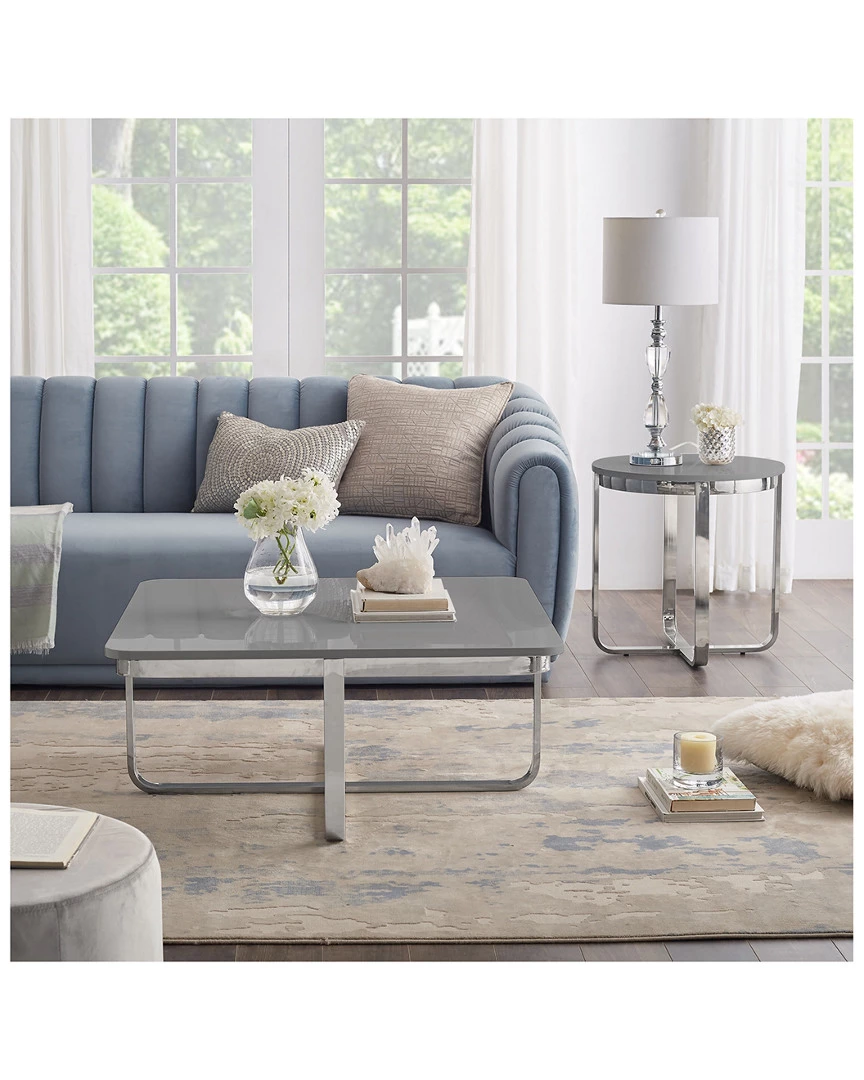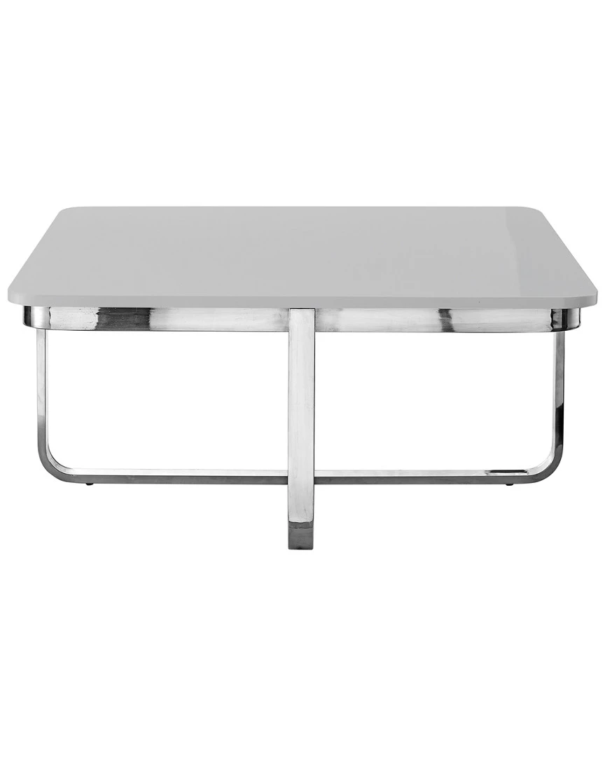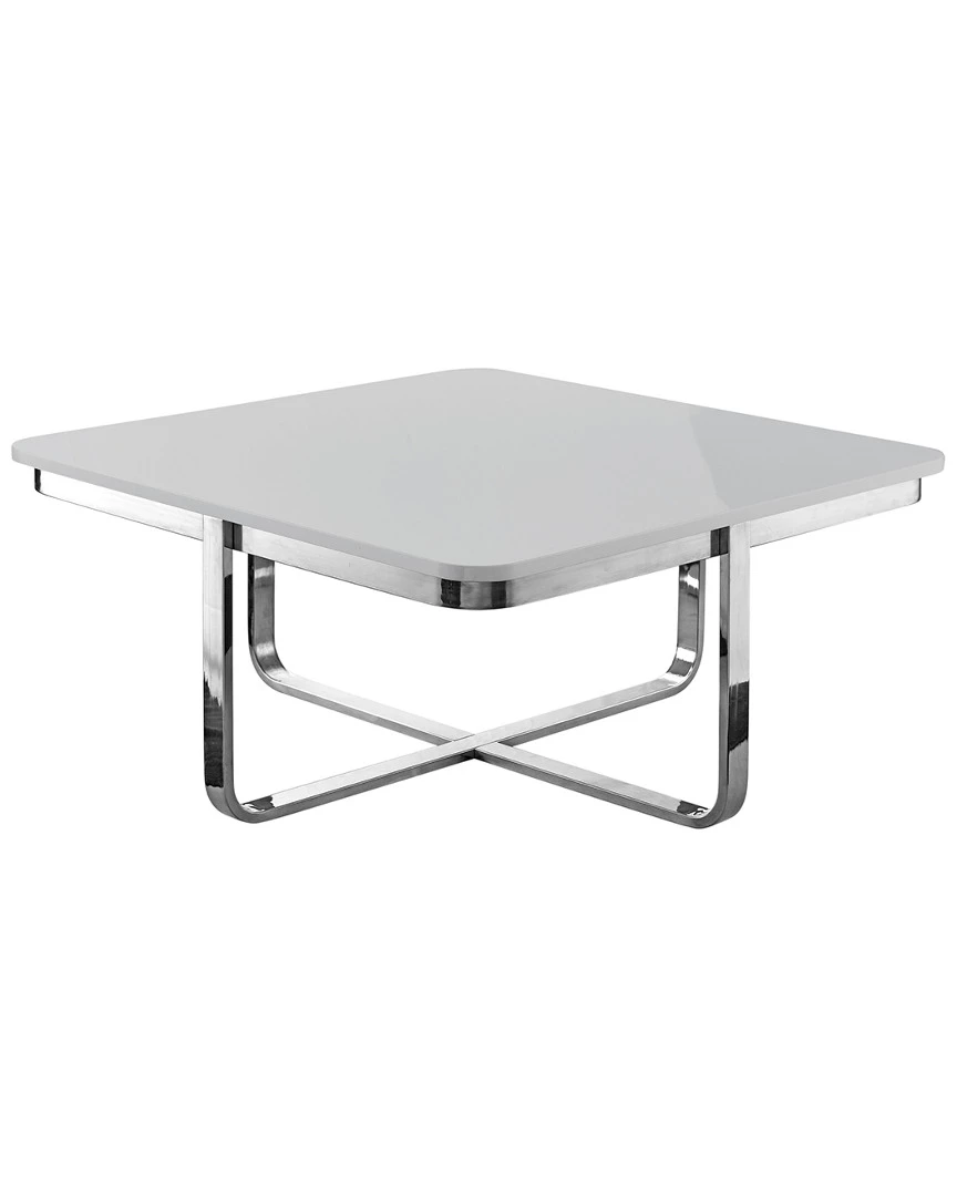 - Bring contemporary modern style into your home. This coffee table is a perfect complement to a variety of interior decor. It is constructed of MDF top with a high gloss lacquer finish and stainless steel shiny clean-lined base. Show off favorite decorative items, let it hold a warm cup of coffee while reading or let it anchor stacks of magazines next to your lovely sofa. This modern coffee table will be a favorite piece for years to come.