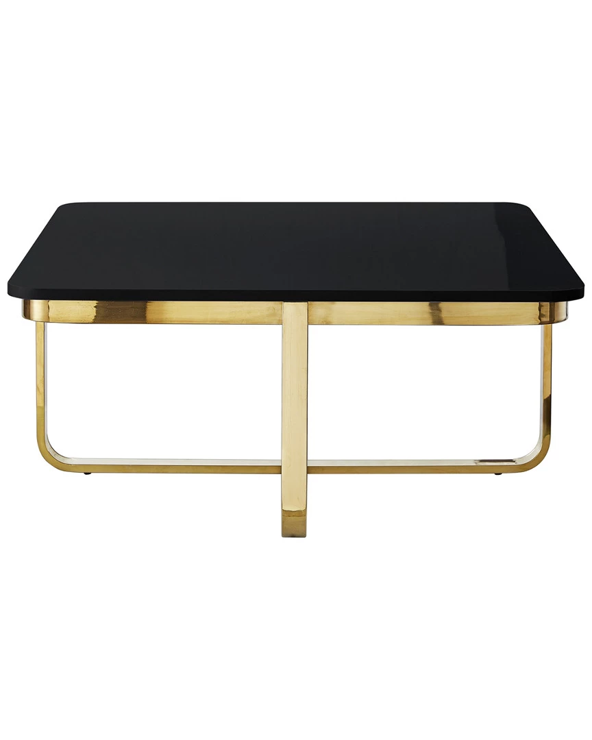 - Bring contemporary modern style into your home. This coffee table is a perfect complement to a variety of interior decor. It is constructed of MDF top with a high gloss lacquer finish and stainless steel shiny clean-lined base. Show off favorite decorative items, let it hold a warm cup of coffee while reading or let it anchor stacks of magazines next to your lovely sofa. This modern coffee table will be a favorite piece for years to come.