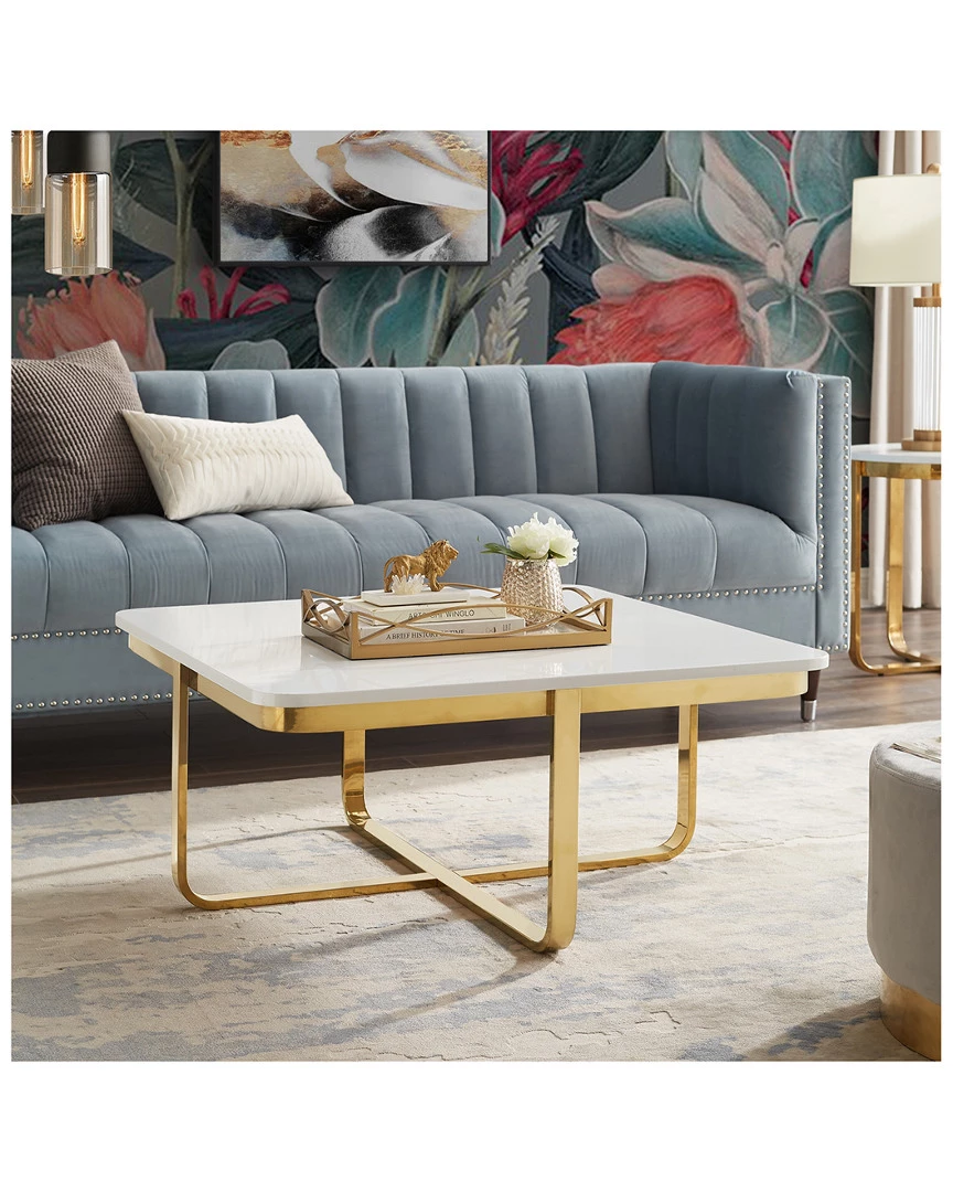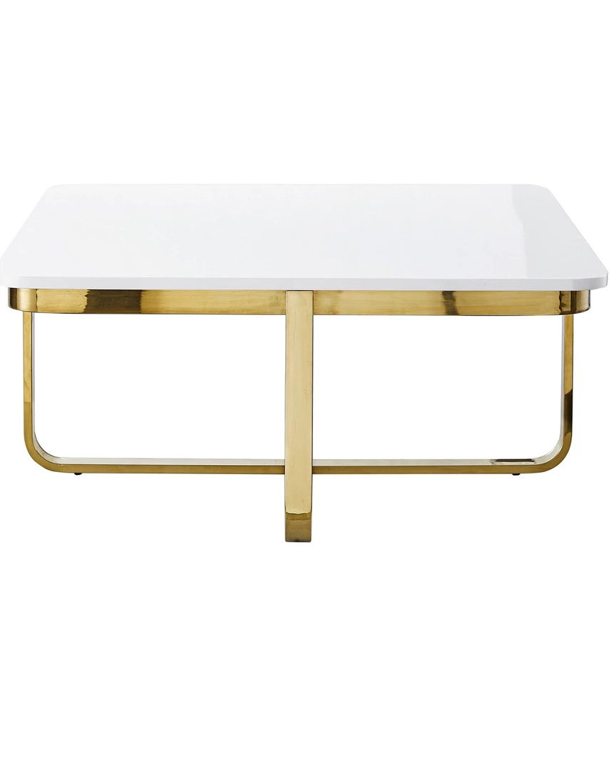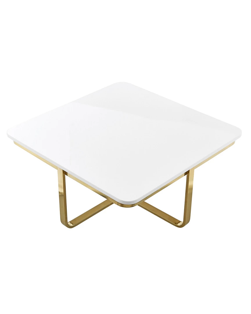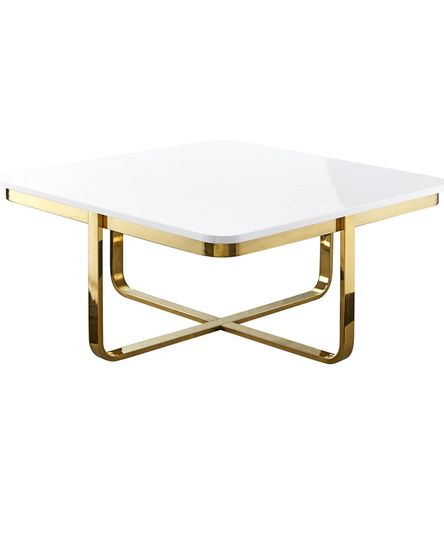 - Bring contemporary modern style into your home. This coffee table is a perfect complement to a variety of interior decor. It is constructed of MDF top with a high gloss lacquer finish and stainless steel shiny clean-lined base. Show off favorite decorative items, let it hold a warm cup of coffee while reading or let it anchor stacks of magazines next to your lovely sofa. This modern coffee table will be a favorite piece for years to come.