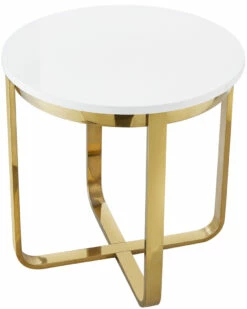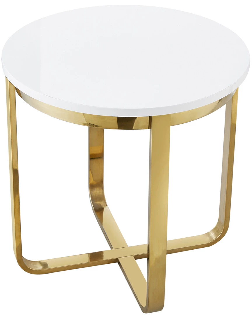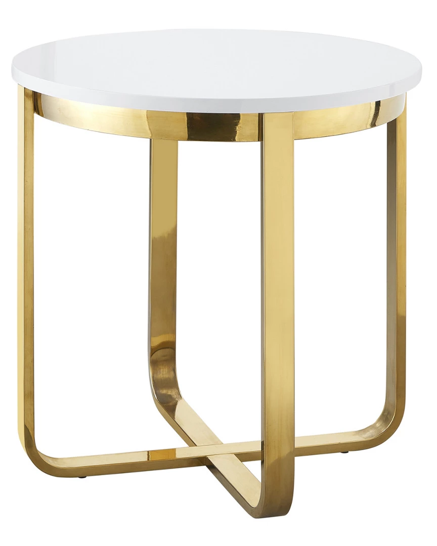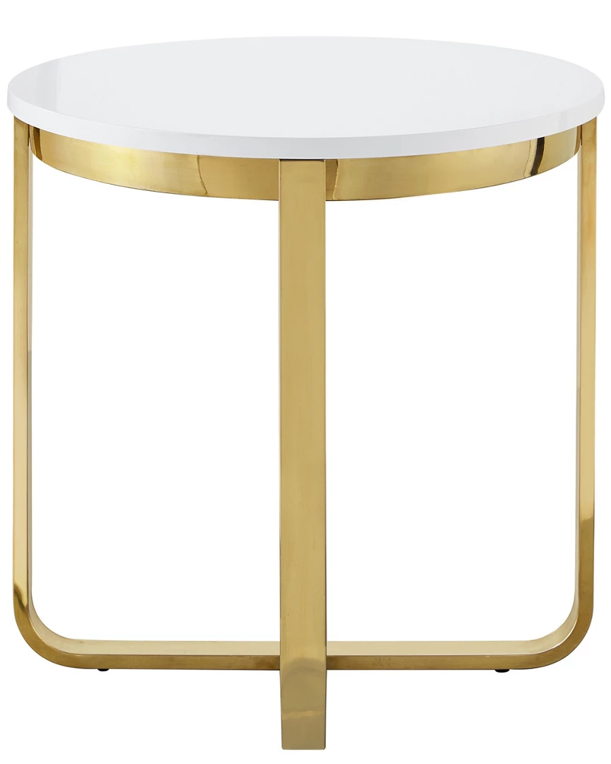 - Bring contemporary modern style into your home. This end/accent table is a perfect complement to a variety of interior decor. Use it as a side table next to your chair or sofa or even as a nightstand in a bedroom. It is constructed of MDF top with a high gloss lacquer finish and stainless steel shiny clean-lined base. Show off favorite decorative items, let it hold a warm cup of coffee while reading or let it anchor a bold lamp and magazines next to a favorite chair. This modern side table will be a favorite piece for years to come.