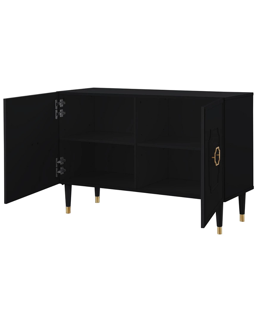 - This gleaming modern lacquer finish sideboard/buffet is perfect for your home or office. It deserves to be the center of attention in your living room, dining room, kitchen or office and to stand out from the rest. This inspired elegant piece features cabinet doors with the stainless steel brushed gold plating handles and leg tips which blend functionality into any home decor. Its shelving storage is perfect for keeping items safely tucked away. You can also display items like decorative plants and photos of your family and friends. This cabinet includes adjustable shelves that can move to different heights to create flexible storage options for items of all shapes and sizes. Versatile with its contemporary clean lines this cabinet brings a unique and exceptional feel to your home.