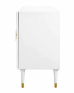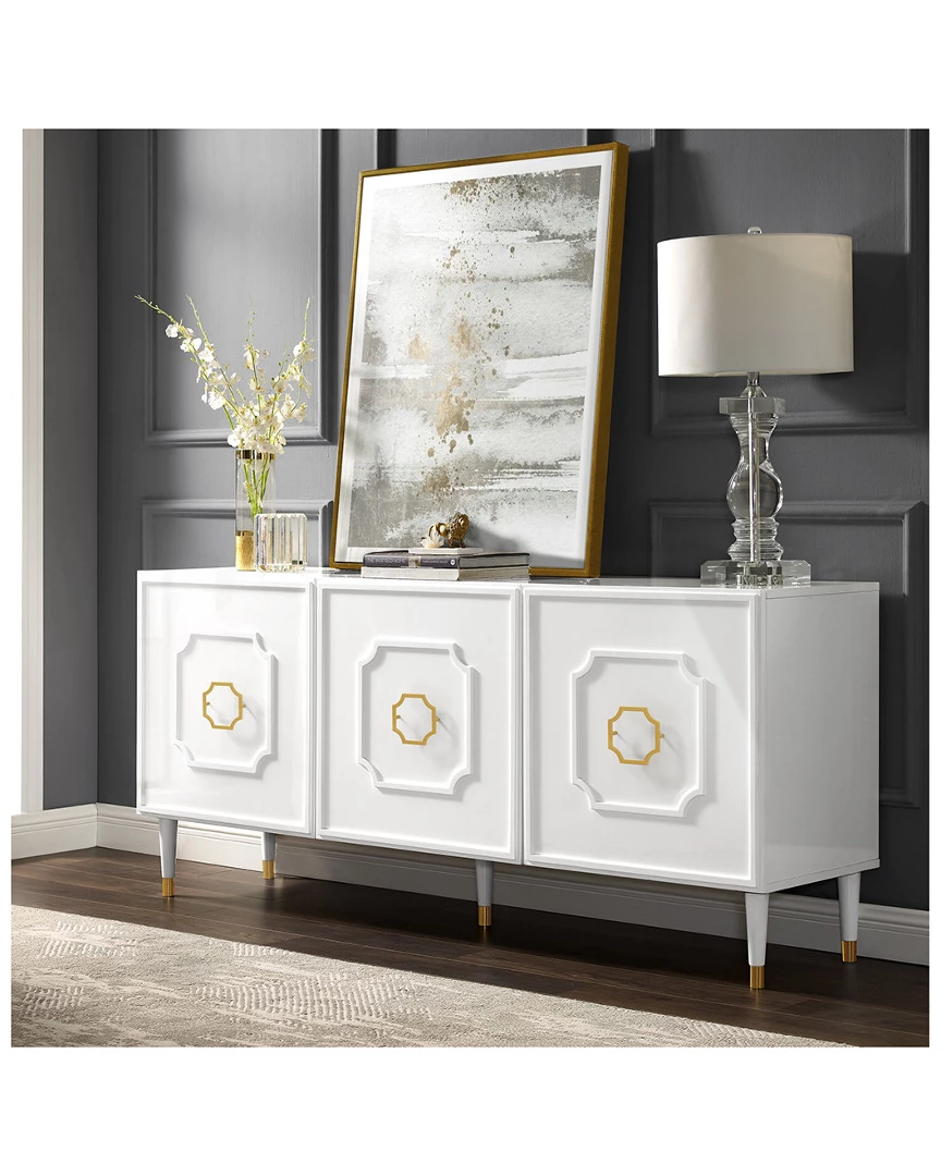 - This gleaming modern lacquer finish sideboard/buffet is perfect for your home or office. It deserves to be the center of attention in your living room, dining room, kitchen or office and to stand out from the rest. This inspired elegant piece features cabinet doors with the stainless steel brushed gold plating handles and leg tips which blend functionality into any home decor. Its shelving storage is perfect for keeping items safely tucked away. You can also display items like decorative plants and photos of your family and friends. This cabinet includes adjustable shelves that can move to different heights to create flexible storage options for items of all shapes and sizes. Versatile with its contemporary clean lines this cabinet brings a unique and exceptional feel to your home.