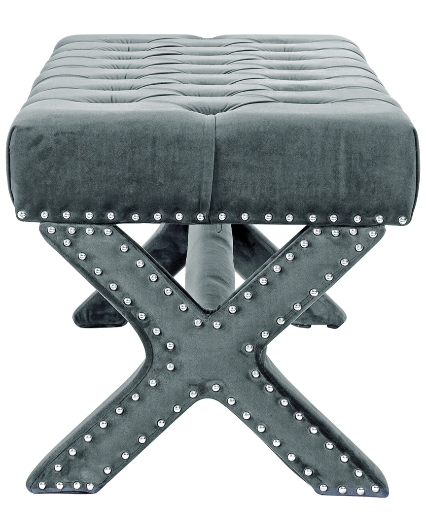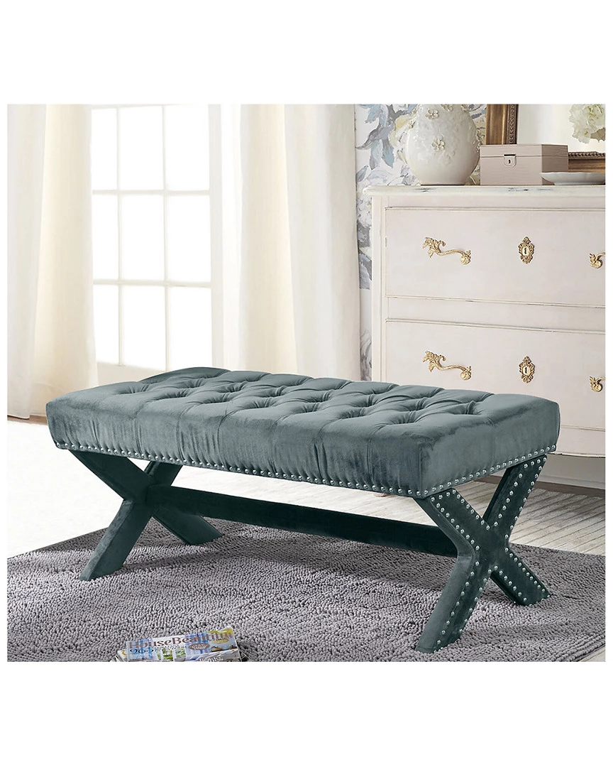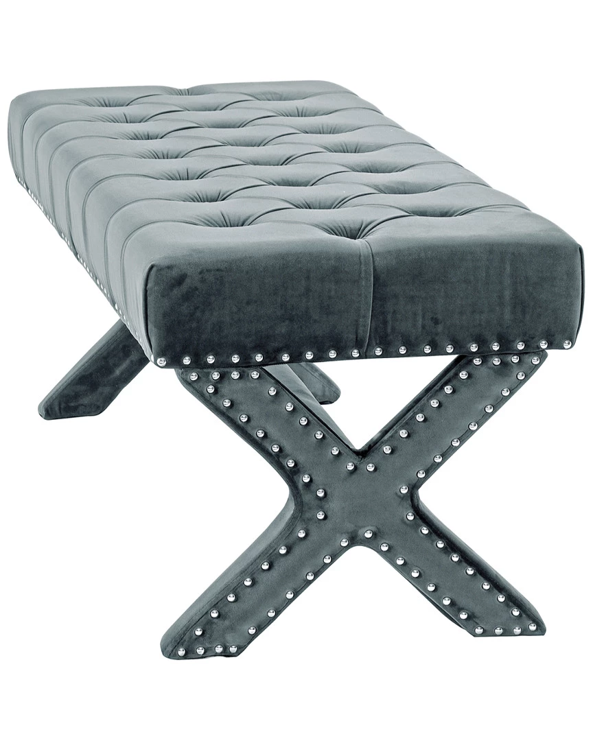 - Design details: Foam construction; button tufted; high density foam cushioned seat; silver decorative nail head trim; solid birch X-legs; velvet fabric
