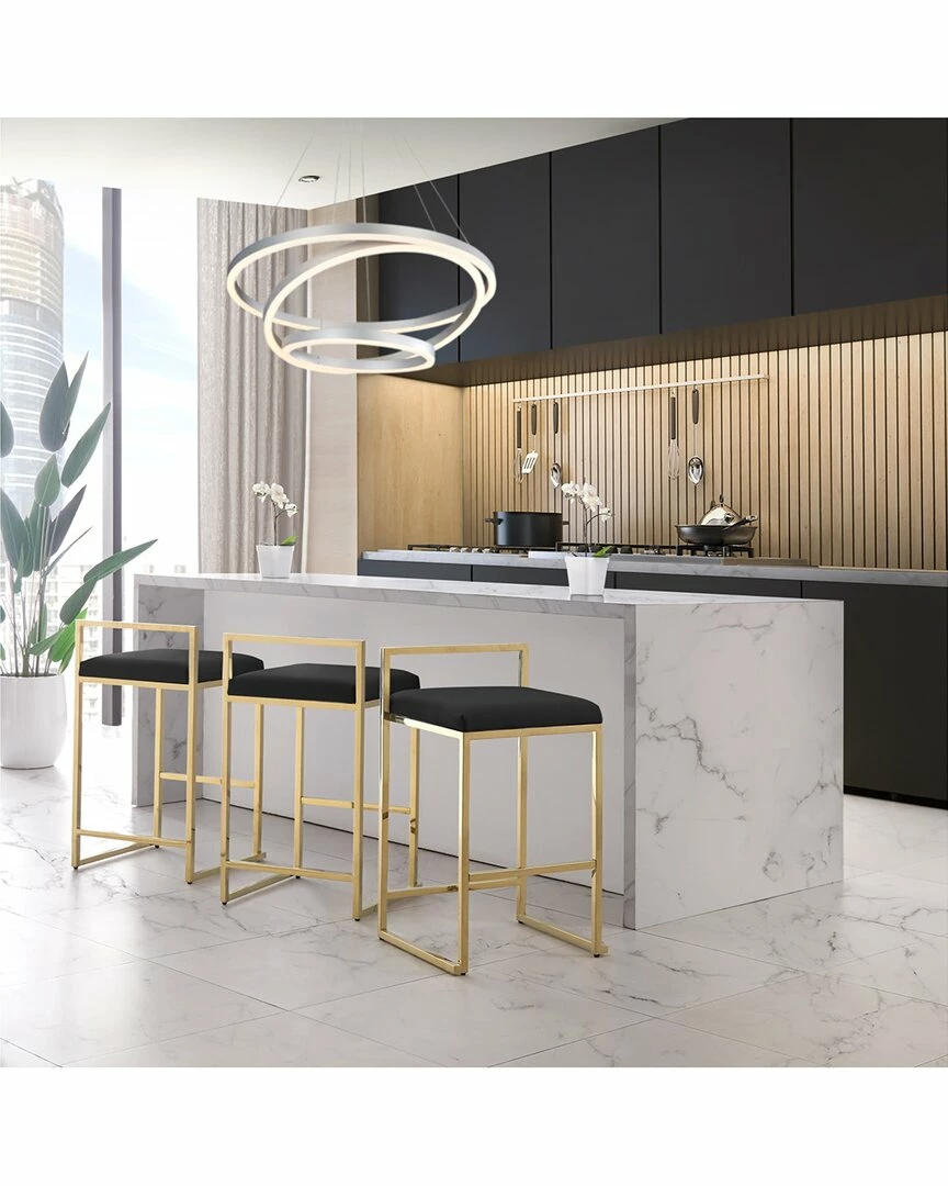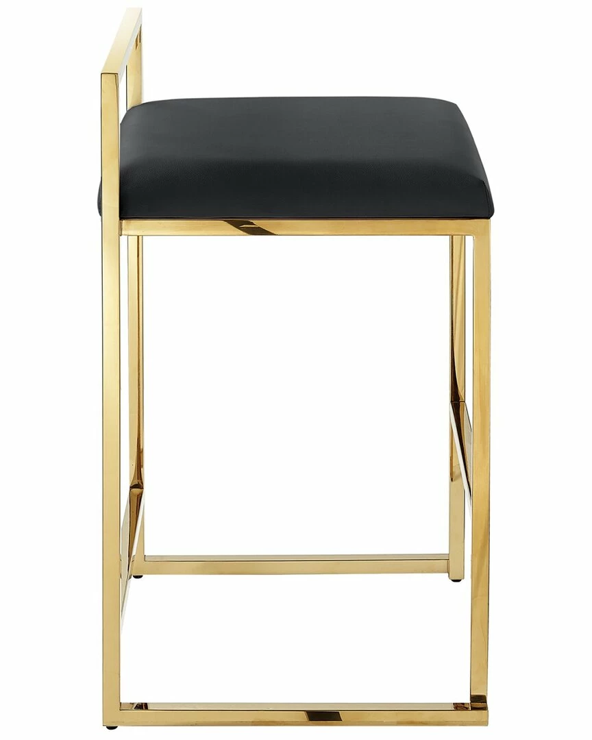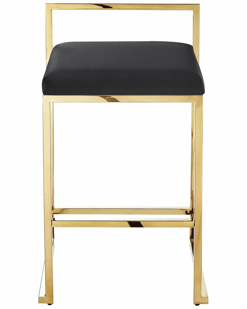 - If you have a home dining area or a kitchen counter, the set of two barstools is sure to make a statement. Thanks to their clean geometric design and stainless steel base, these stools have a modern feel, perfect for contemporary styles. Moreover, they include an upholstered PU leather seat for lavish comfort and soft feel. It is the perfect mix of classic design and practical comfort. A footrest is to support you and give you a relaxed feeling. On top of that, it has a visually appealing design complementing most furniture sets in your home.