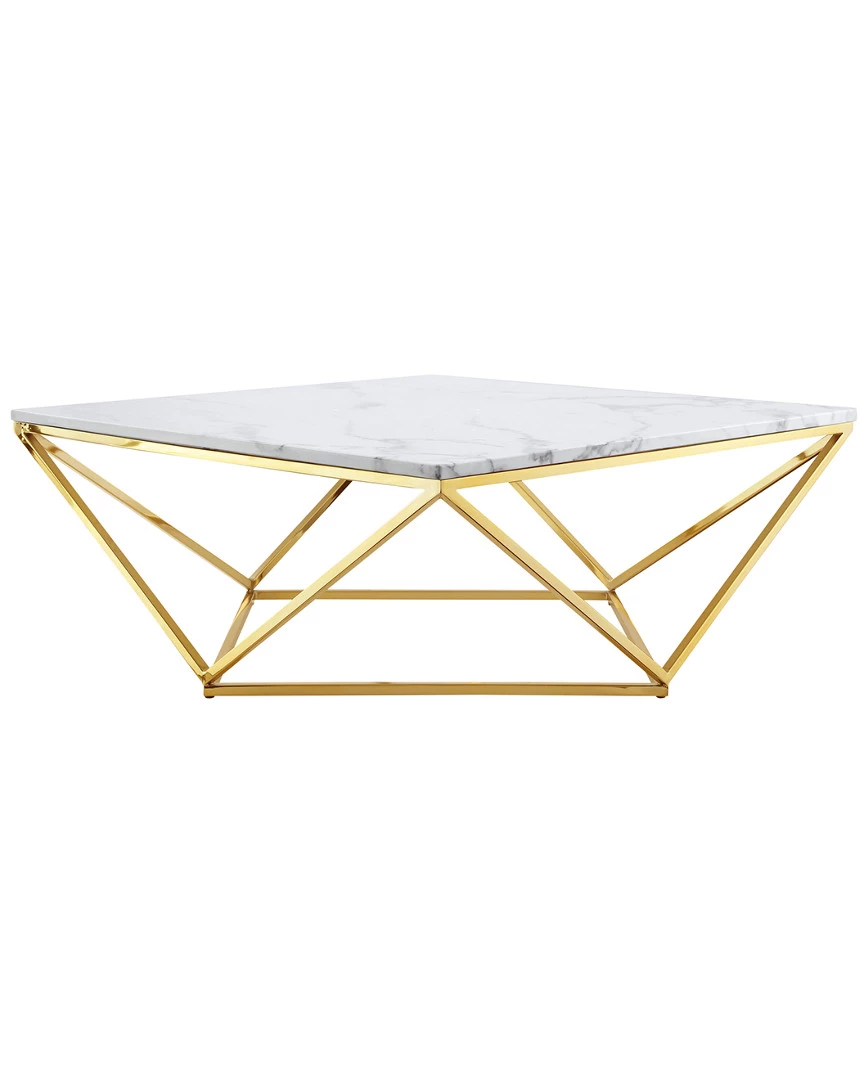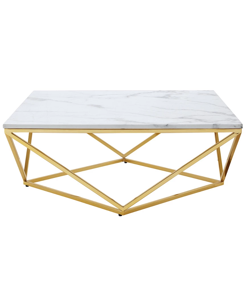 - Design details: This modern coffee table is designed with an elegant geometric open metal frame and a marble top that creates a welcoming feeling and provides ample space to put drinks or decor on top. Whether using it as the perfect perch for your remote control or morning mug it brings a sophisticated and luxurious look to any setting. Show off your favorite decorative items, let it hold a warm cup of coffee while reading or let it anchor a bold lamp and magazines next to a favorite chair. Perfect as an accent piece or centerpiece, bringing contemporary modern style into your home. This metal frame coffee table is a perfect complement to a variety of interior decor