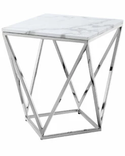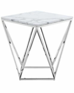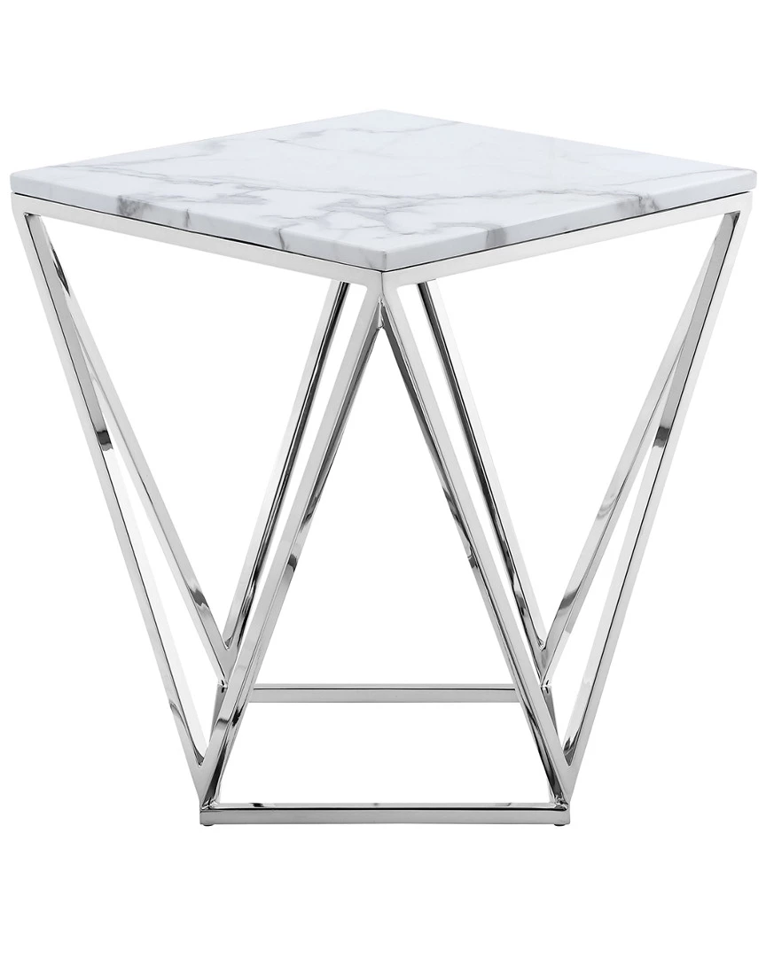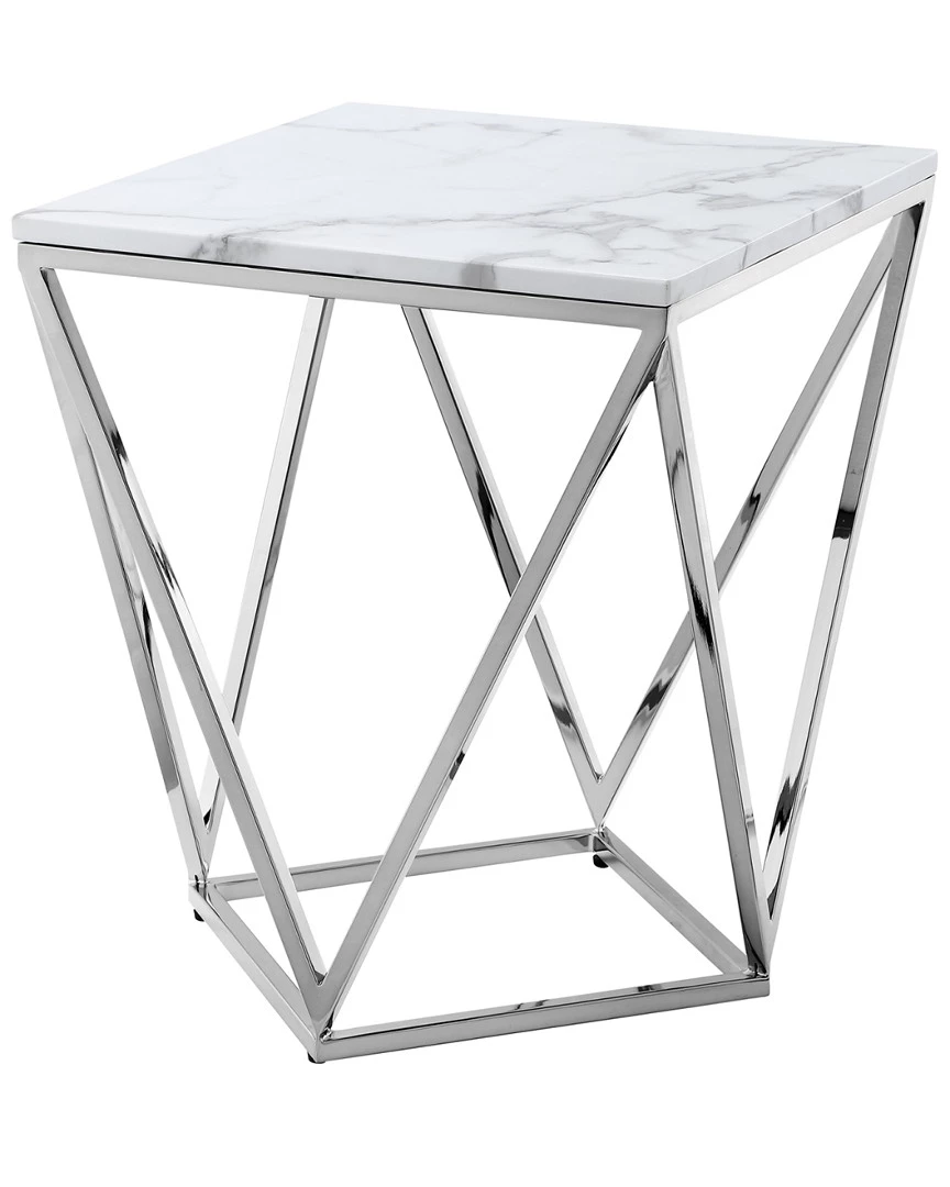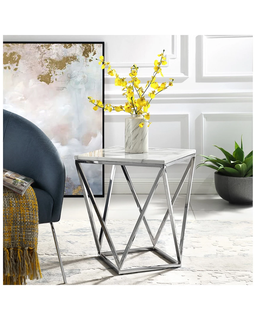 - Design details: Bring contemporary modern style into your home. This geometric open metal frame accent table is a perfect complement to a variety of interior decor. Use it as an end table in the living room, as a sleek side table in the bedroom or as a display table in the entryway or home office. Show off favorite decorative items, let it hold a warm cup of coffee while reading or let it anchor a bold lamp and magazines next to a favorite chair. With a marble top and metal base finished in classic shiny gold or silver, this modern end table will be a favorite piece for years to come