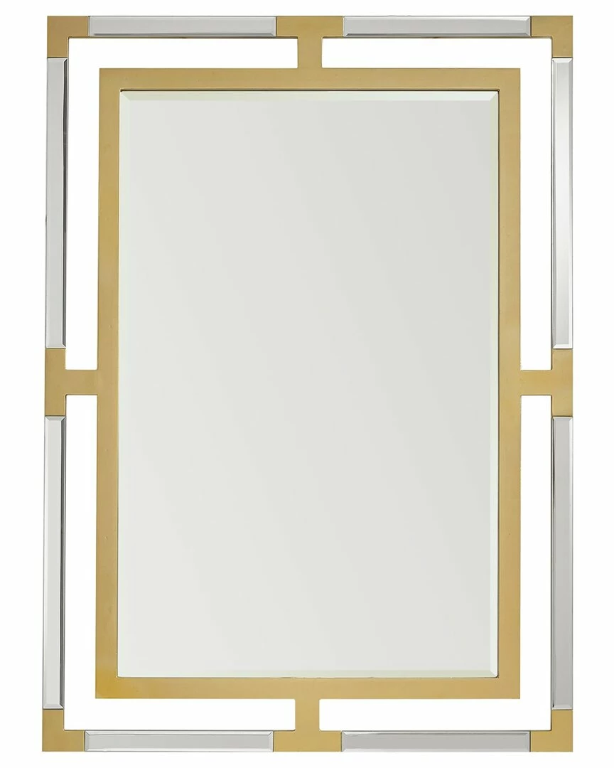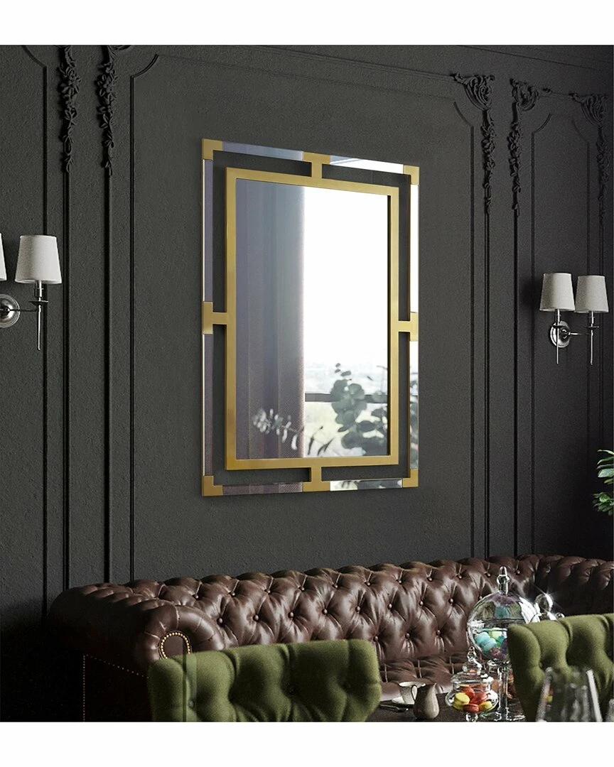 - This lovely wall mirror in a contemporary or modern style will add a touch of elegance to your house. A sleek, geometric frame with a stunning gold finish combines modern design with attractive brilliant aesthetics. The large size of this mirror adds a glamorous element to any area, serving as dZcor or a charming statement. Hang it in any space that may benefit from a stylish gold edge, such as your entryway, bedroom, bathroom or makeup room.