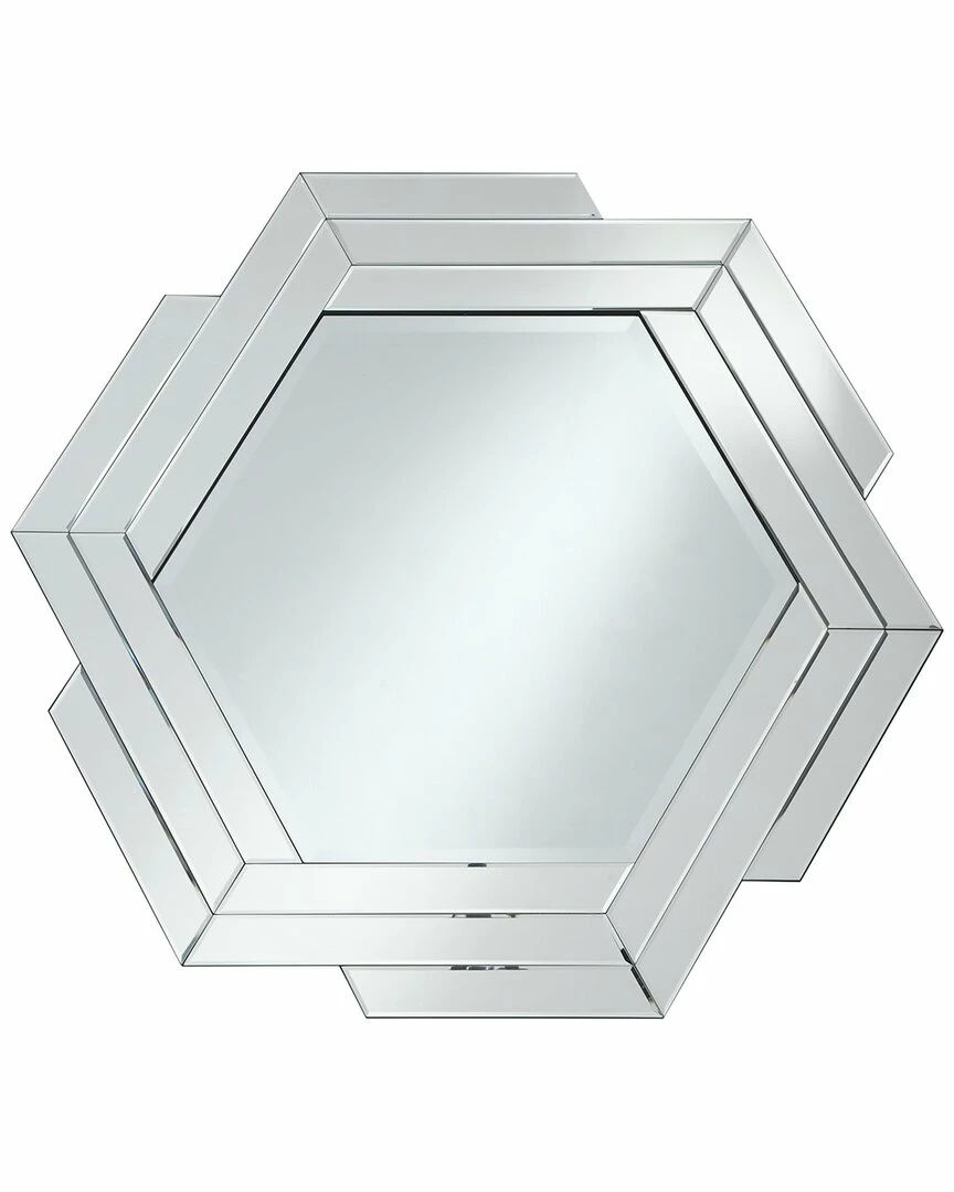 - Add glam style to your contemporary abode with this round hexagon accent wall mirror. Dimensional layers of mirrored tiles brighten up your space and reflect the light. Add it as a statement piece in your entryway, dining room, living room or bedroom. It is also a stylish way to hide imperfections, maximize light and have some extra shine in your room. Lightweight with an MDF frame construction and easy to hang preinstalled D-rings for mounting.