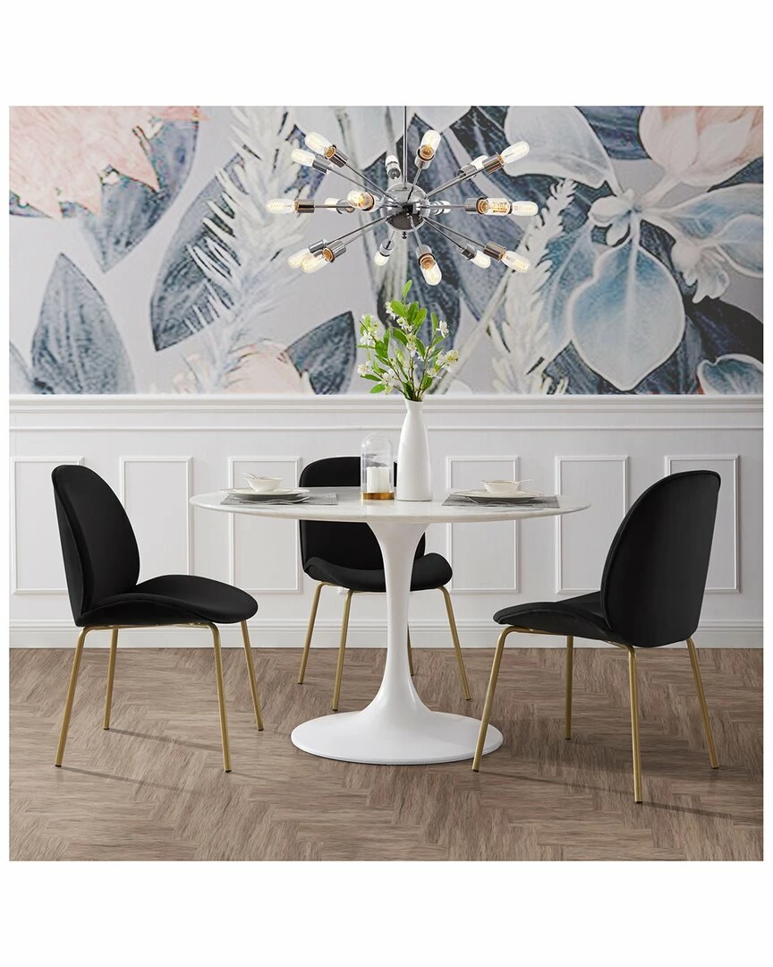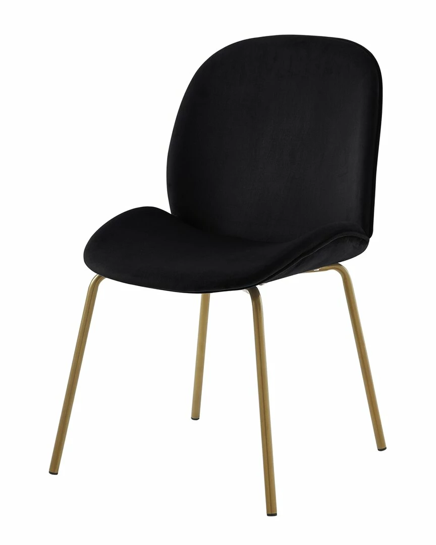 - Add style and sophistication to your dining room with our set of 2 dining chairs. Featuring buttery soft velvet upholstery and constructed with a high density foam cushioned seat, our dining chairs provide the perfect balance of functionality and aesthetic. The sleek metal legs provide longevity in both structure and timeless style. Available in multiple color ways, these chairs bring pops of color to any space or can seamlessly blend in with any room in your home.