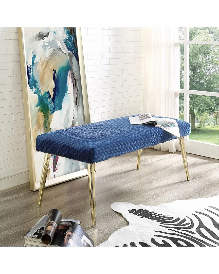 - Design details: Velvet construction; leaf textured upholstery; metal legs