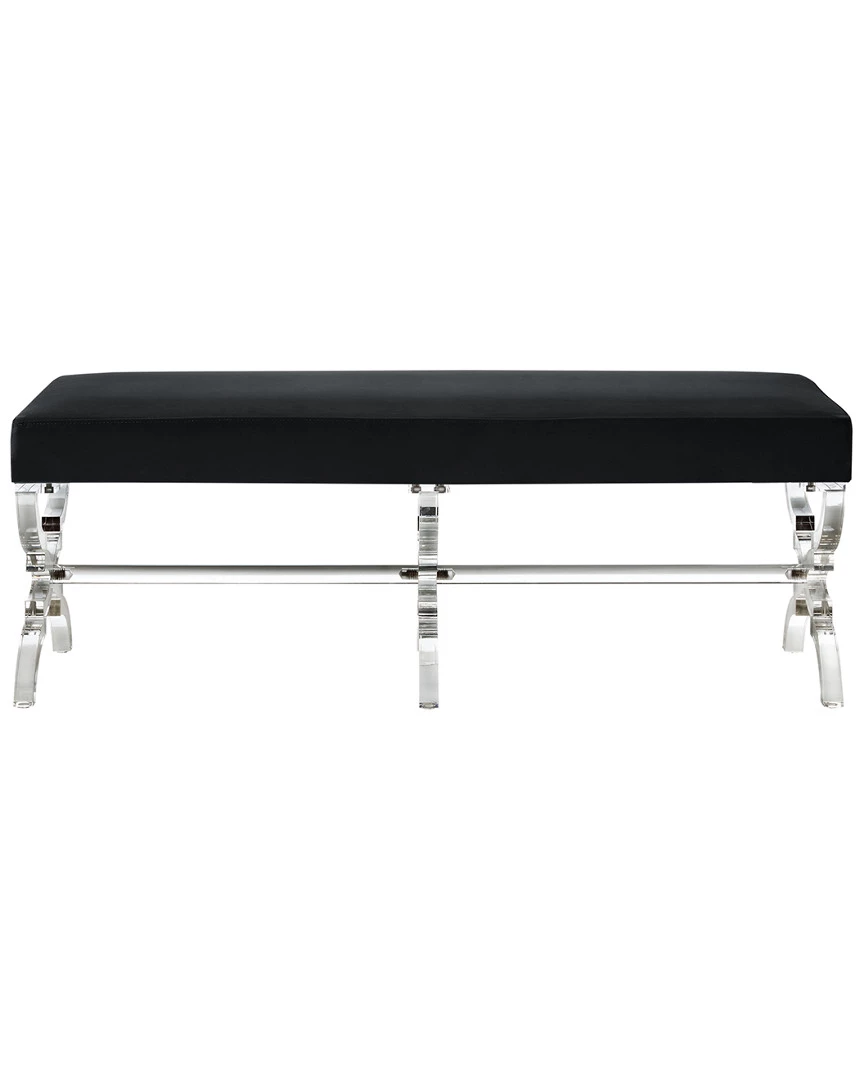 - Design details: Foam construction; velvet upholstered; high density foam cushioned seat; translucent x-leg acrylic base