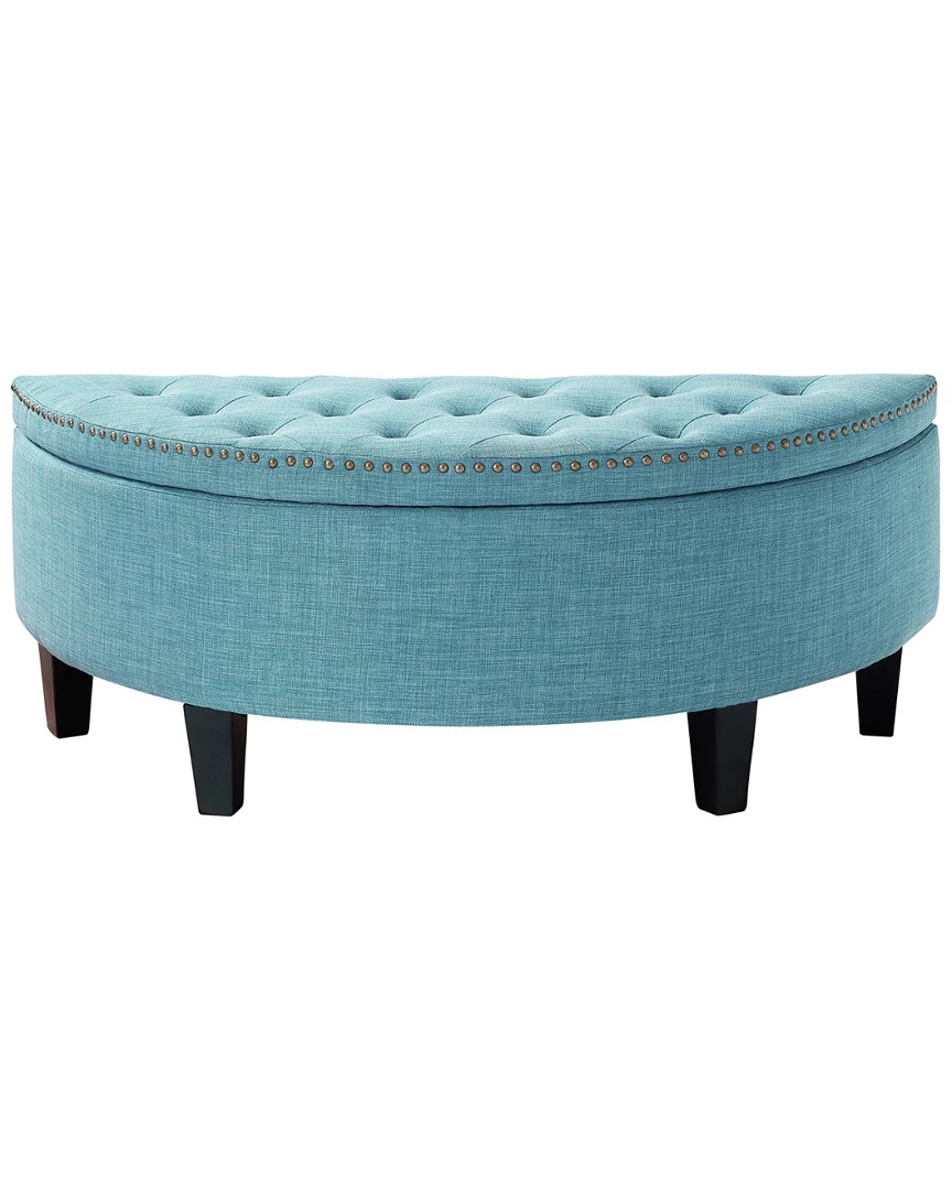 - Design details: Foam construction; button tufting; crisp linen fabric; gold tone nail head trim; lift top with safety hinge; storage compartment; wooden legs; plywood frame