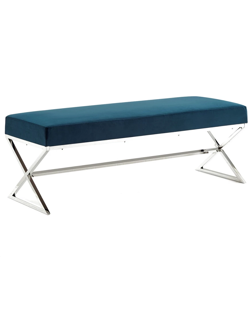 - Design details: Foam construction; velvet upholstered; high density foam cushioned seat; stainless steel x-leg base