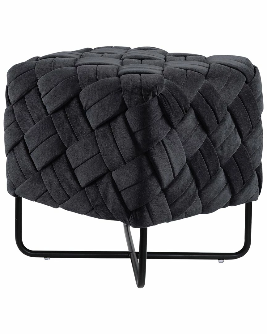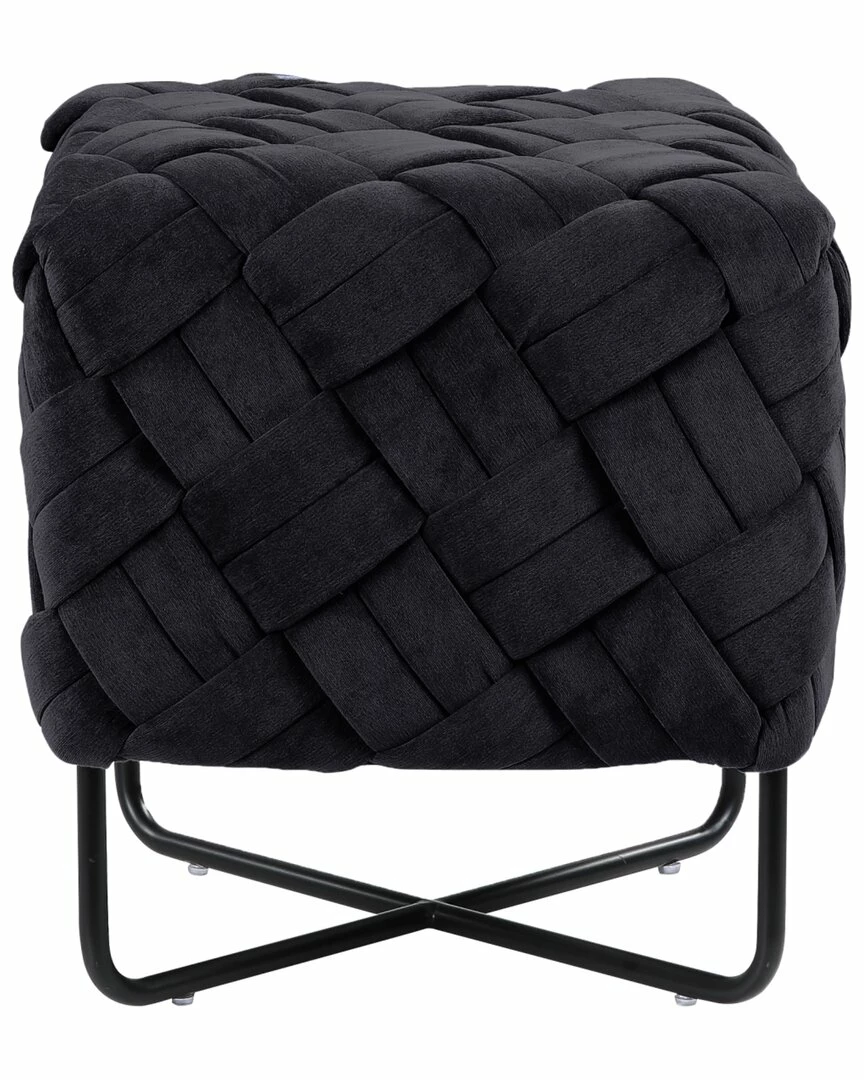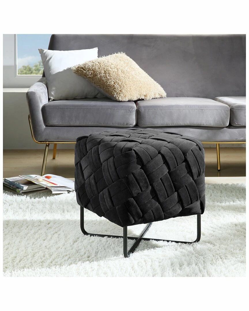 - Featuring an all-over intricate basket weave design, this square ottoman is sure to boast class and style to any interior space. Constructed with sturdy yet sultry velvet fabric and high density foam to add plushness and luxury, this piece also features a sleek matte metal base to add sophistication and edge to your home. This ottoman can stand alone or be styled as a pair for additional seating. It is also available in multiple color options to blend in or stand out effortlessly in any room.