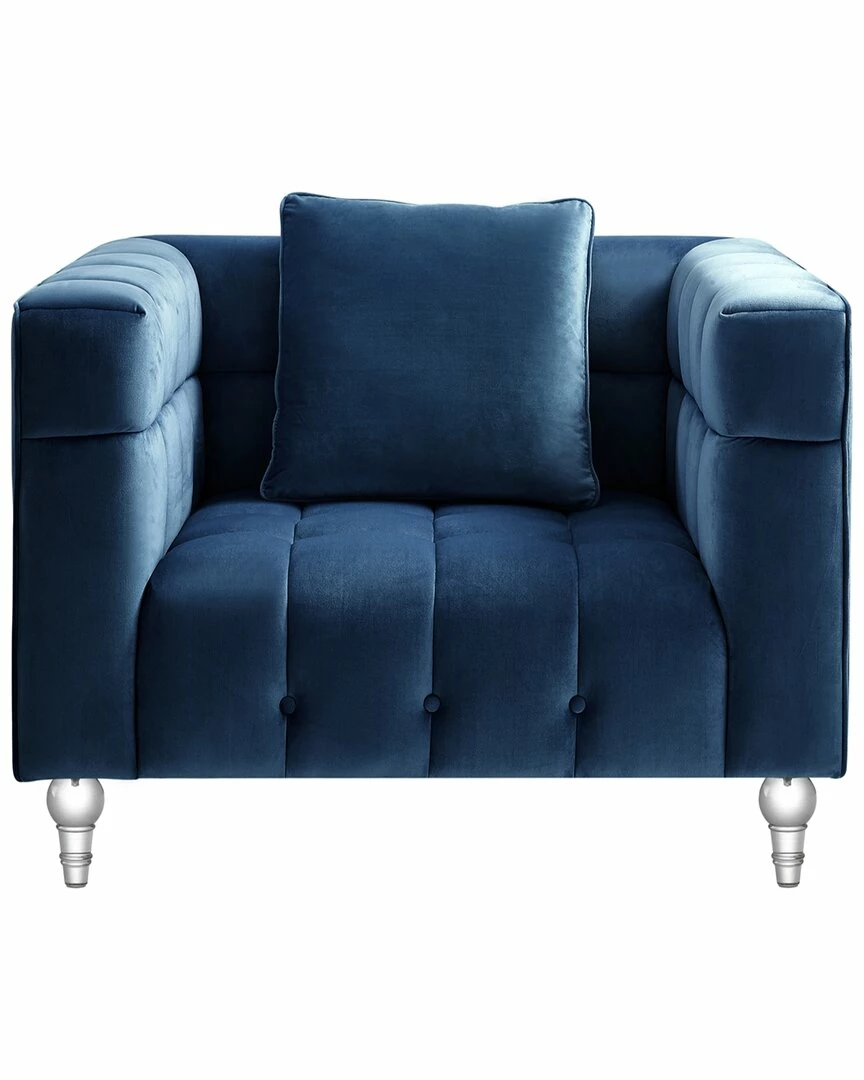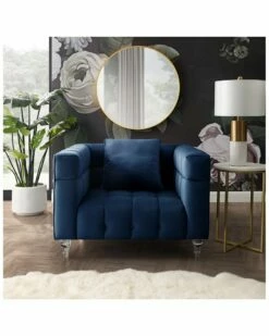 - Choosing the right piece for your home can instantly transform a dull room into a spectacular one. Blending traditional design with a touch of contemporary flair, this club chair is a perfect finishing touch to create a dynamic and cozy interior home space. Straight lines, square arms, soft velvet handmade upholstery, biscuit button tufting and clear acrylic legs makes a brilliant combination for a perfect modern statement piece. Frame is made of combined solid wood and manufactured wood, which makes construction to be firm and stable, and sinuous springs give a nice support as you sit.