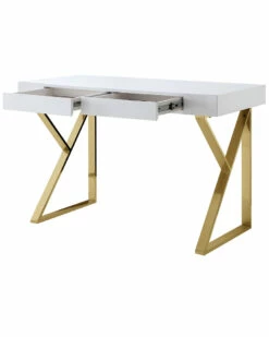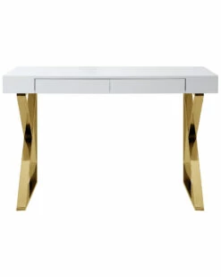 - Design details: Our contemporary dual drawers writing desk with a high gloss finish and shiny stainless steel legs brings a touch of modern to your home or office. Its compact design is ideal for small homes, offering a generous extended work surface. This glamorous style classic desk w/ modern appeal really makes a statement and brings luxurious and sophisticated look, creating shimmering and lustrous appeal. No doubt this piece of furniture will make it the perfect addition to your office, bedroom, entryway or living room