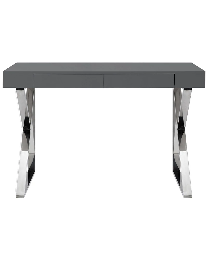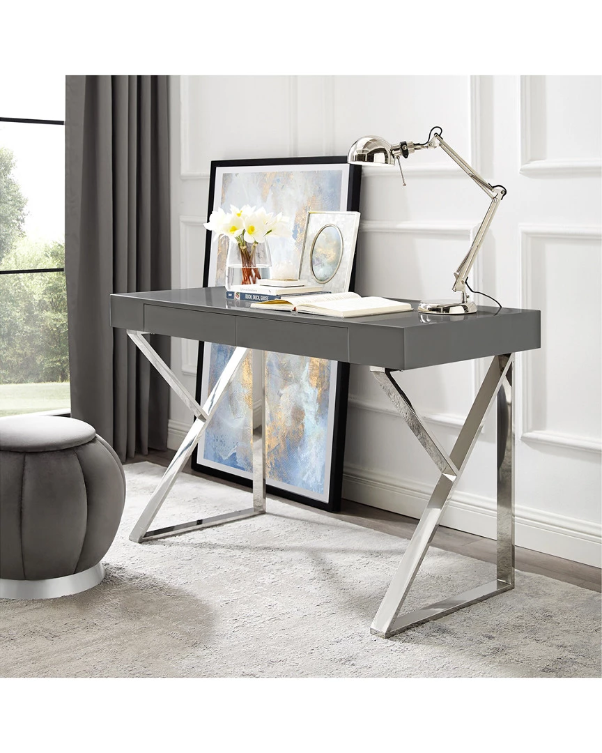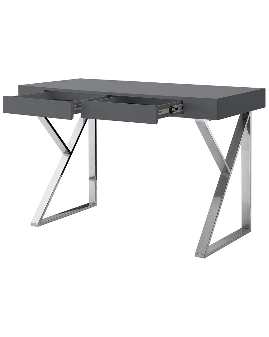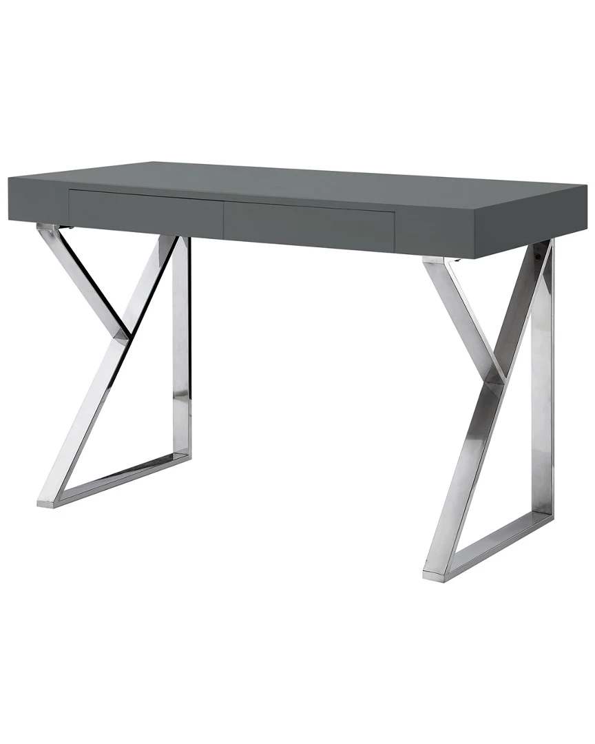 - Design details: Our contemporary dual drawers writing desk with a high gloss finish and shiny stainless steel legs brings a touch of modern to your home or office. Its compact design is ideal for small homes, offering a generous extended work surface. This glamorous style classic desk w/ modern appeal really makes a statement and brings luxurious and sophisticated look, creating shimmering and lustrous appeal. No doubt this piece of furniture will make it the perfect addition to your office, bedroom, entryway or living room