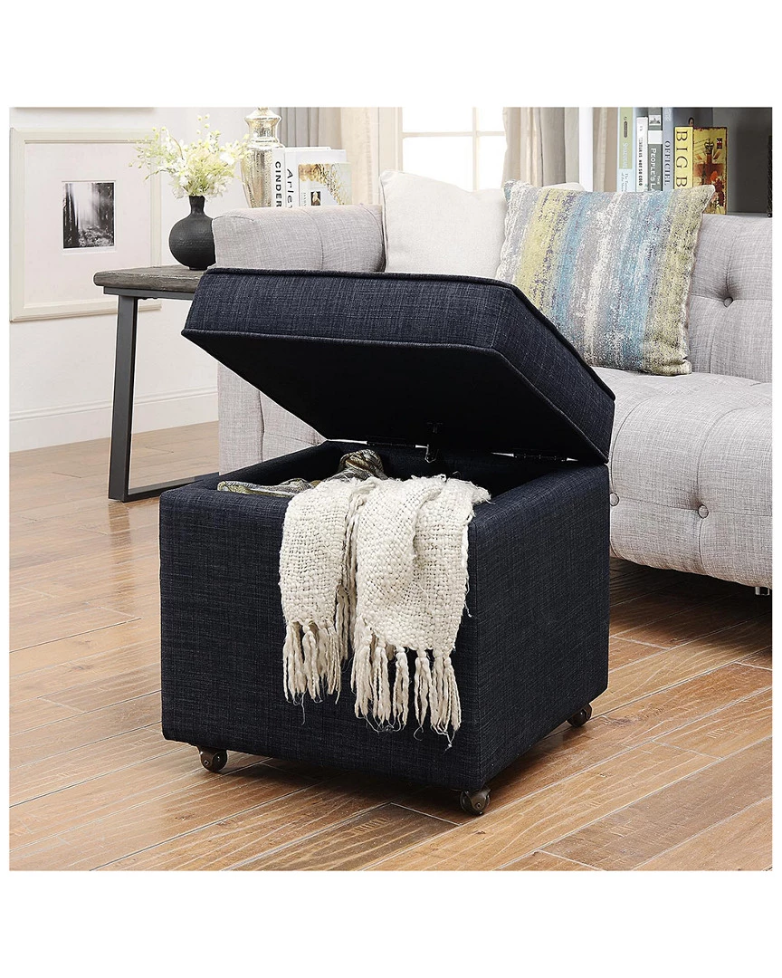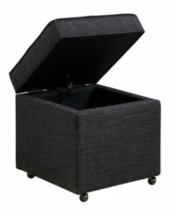 - Design details: Caster construction; linen fabric; high density foam cushioned seat; hinged lid; hidden storage compartment; sturdy casters