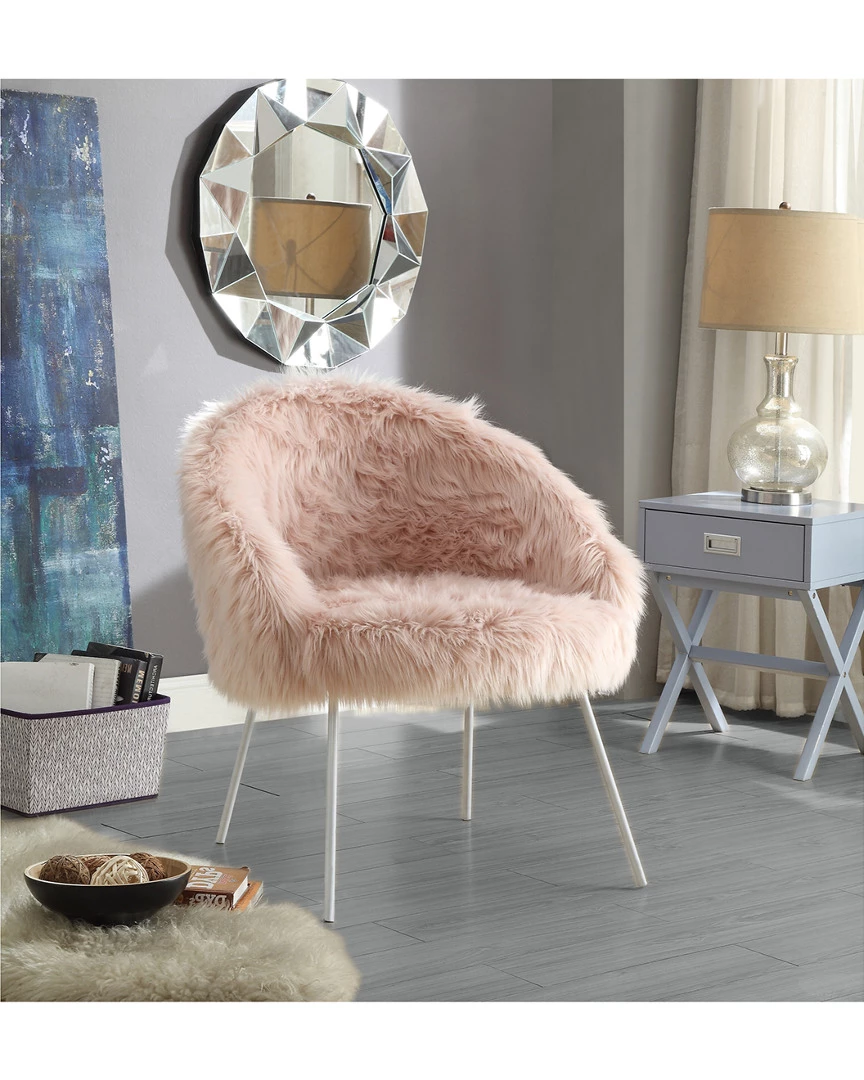 - Design details: Foam construction; faux shag fur; high density foam cushioned seat; metal legs
