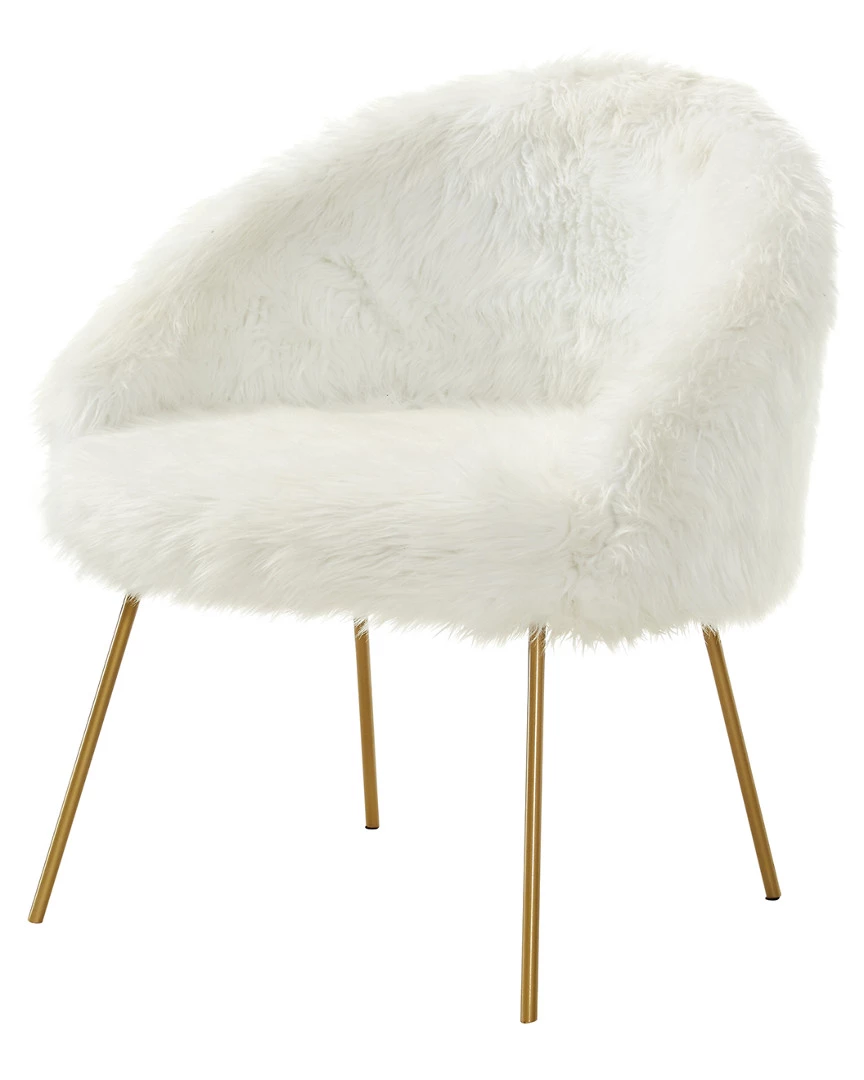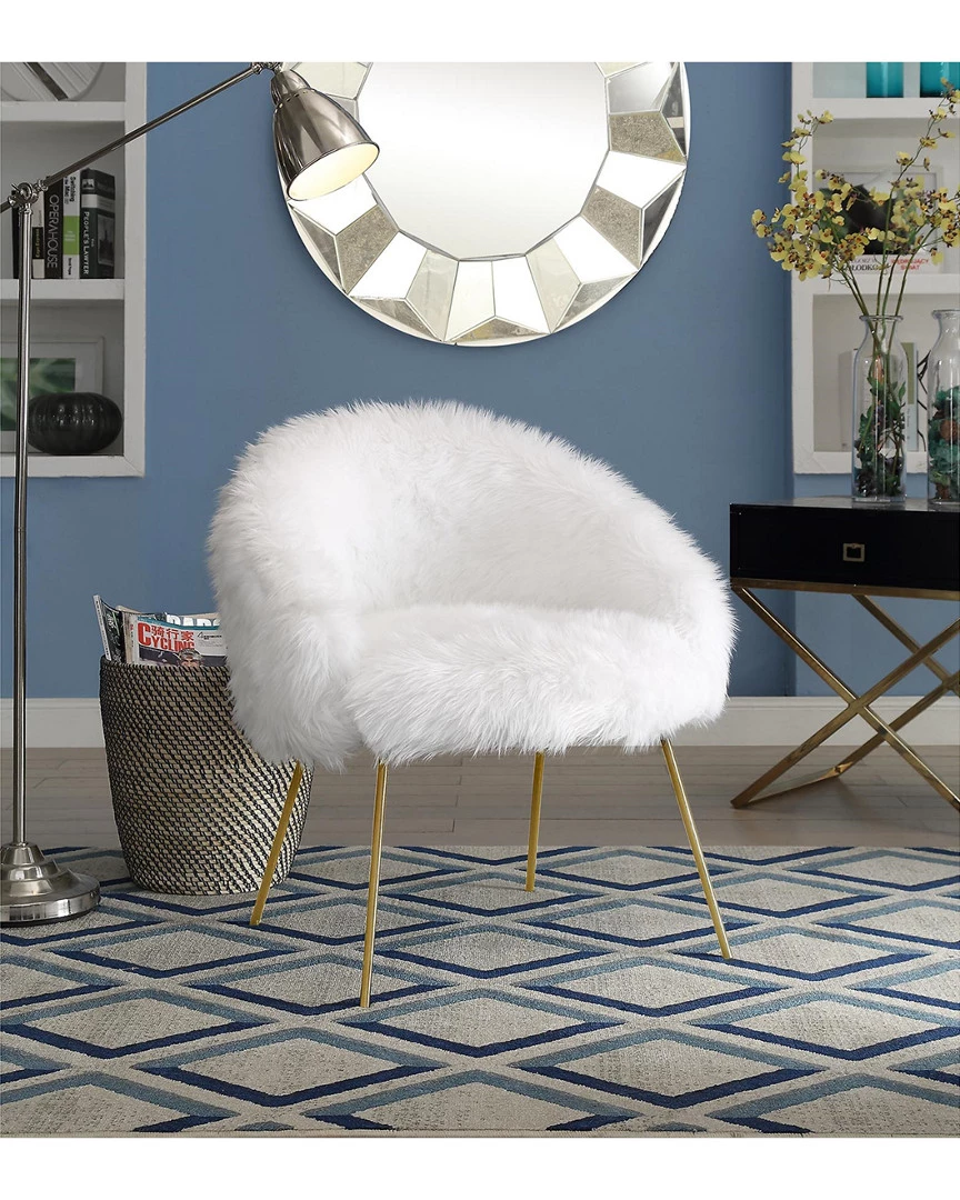 - Design details: Foam construction; faux shag fur; high density foam cushioned seat; metal legs
