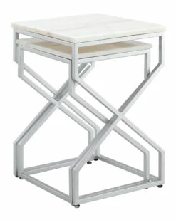 - Design details: Bring contemporary modern style into your home. This metal x-cross legs accent table is a perfect complement to a variety of interior decor. Use it as an end table in the living room, as a sleek side table in the bedroom or as a display table in the entryway or home office. Show off favorite decorative items, let it hold a warm cup of coffee while reading or let it anchor a bold lamp and magazines next to a favorite chair. With a marble top and metal base finished in classic matte gold or silver, this modern side table will be a favorite piece for years to come