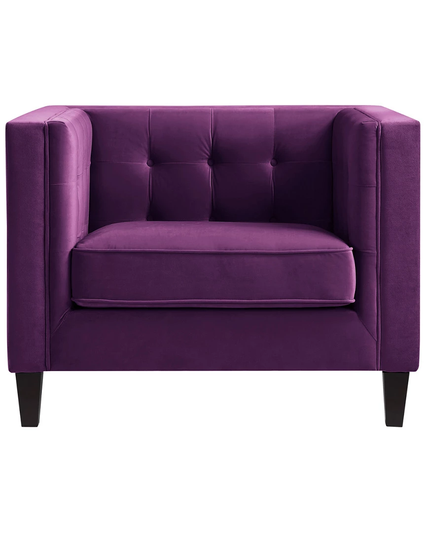 - Design details: Our velvet Tuxedo club chair adds a gentle sophistication in the confines of your living room, bedroom or entryway. This simple but elegant at the same time accent piece provides both functionality and a focal point of color and style that seamlessly blend with your main furniture to create a dynamic and cozy interior space to come home to. Straight lines, square arms, soft velvet handmade upholstery, biscuit button tufting and espresso finish tapered legs makes a brilliant combination for a perfect statement piece. Frame is made of combined solid wood and plywood, which makes construction to be firm and stable, and individually wrapped pocket springs give a nice support as you sit.