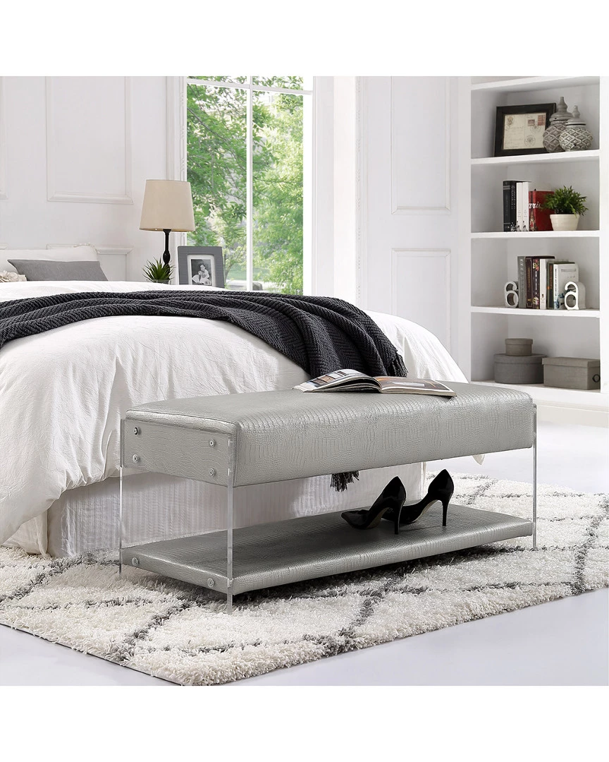 - Design details: Acrylic construction; PU leather; two tiers; high density foam cushioned seat; clear acrylic legs; high density foam; sturdy plywood frame