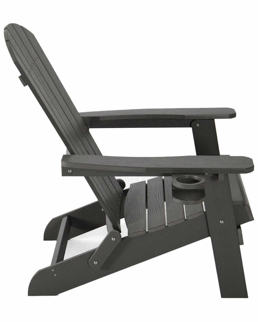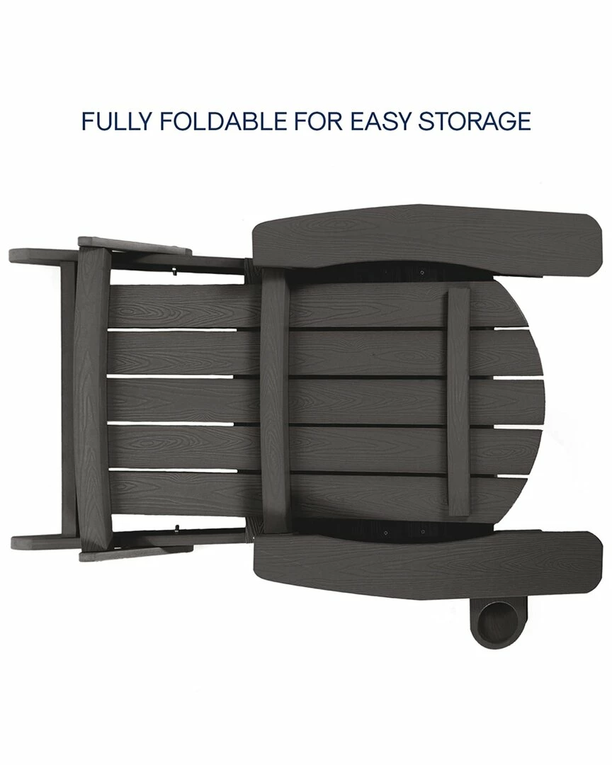- Nothing beats unwinding in your backyard on a specially designed chair while taking in the fresh air. The foldable Adirondack chair is ideal for relaxing in the great outdoors while admiring nature’s splendor. It is made of weatherproof faux wood (plastic) and stainless steel hardware. Additionally, it adds a classic and transitional vibe to your backyard or patio space.