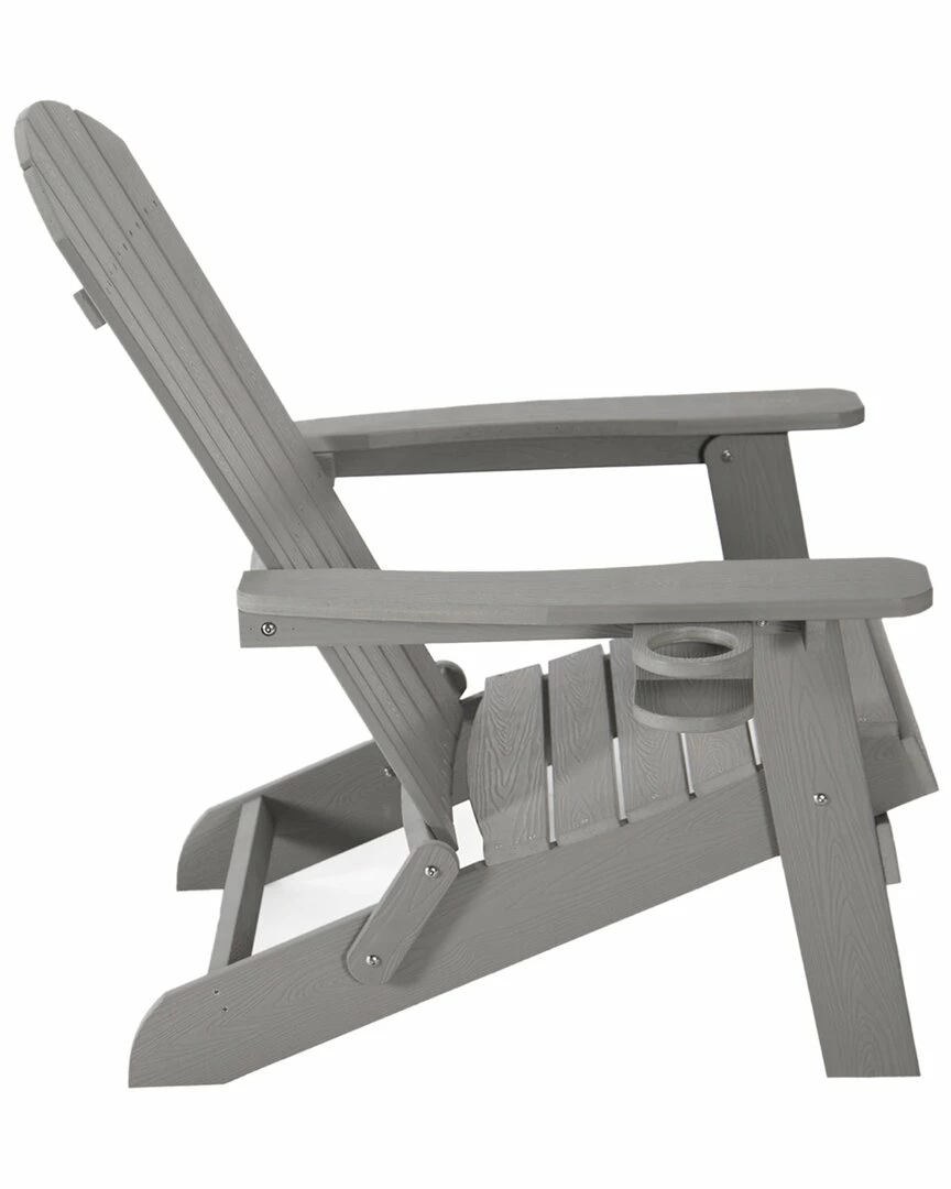 - Nothing beats unwinding in your backyard on a specially designed chair while taking in the fresh air. The foldable Adirondack chair is ideal for relaxing in the great outdoors while admiring nature’s splendor. It is made of weatherproof faux wood (plastic) and stainless steel hardware. Additionally, it adds a classic and transitional vibe to your backyard or patio space.